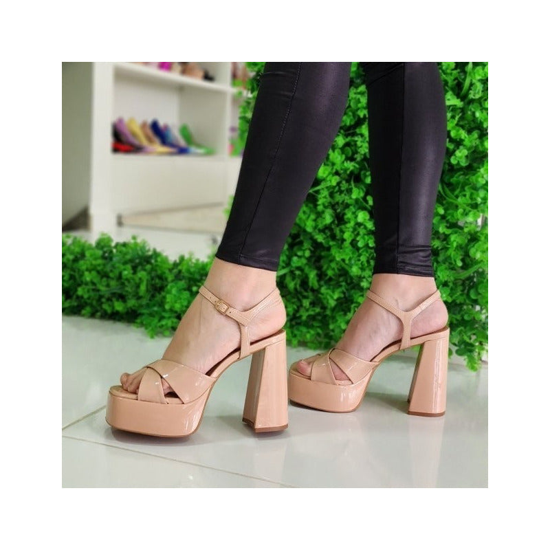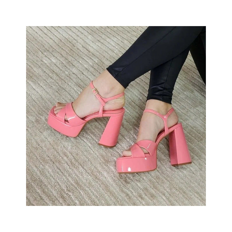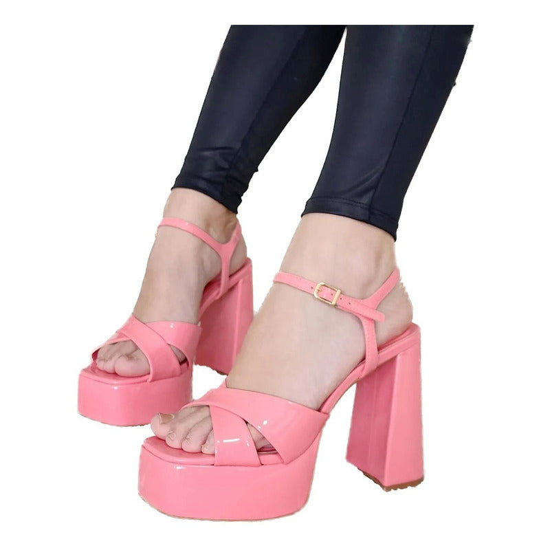 Plataformas Charol Tacón Grueso Tira Tobillera