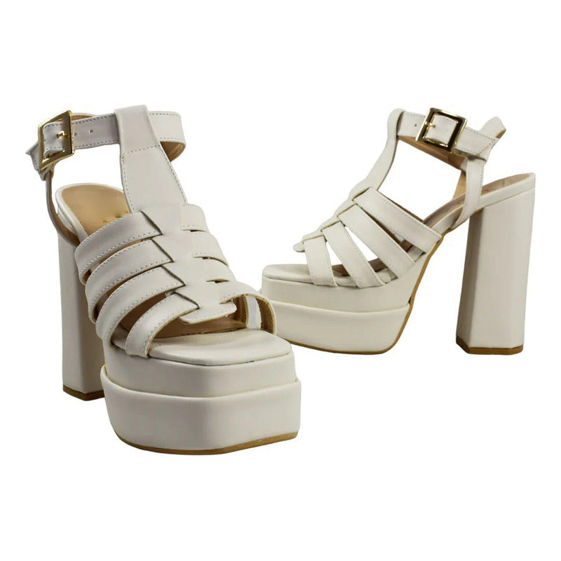 Espectaculares Zapatillas o Sandalias Altas Tacón Grueso con tiras con Brillos. Hecho artesanalmente en México. -ALTURA: 12 CM
