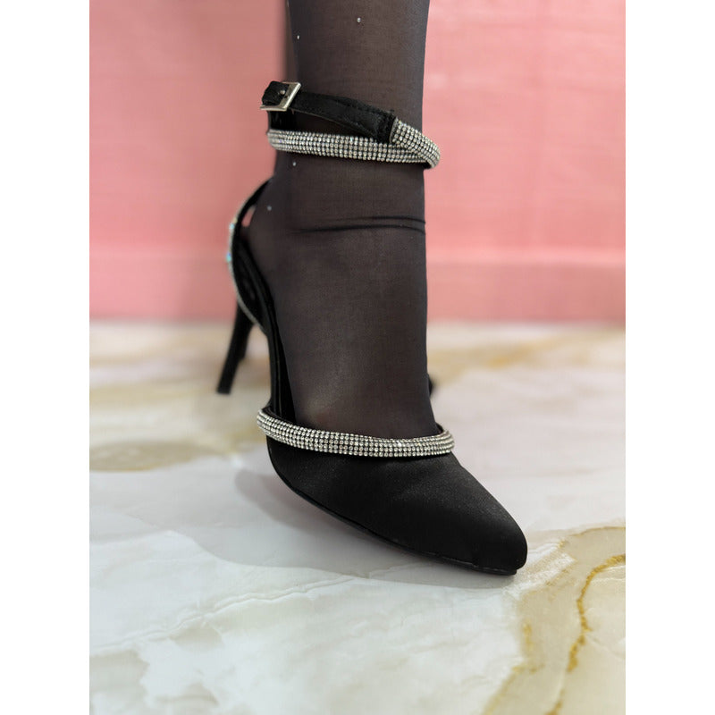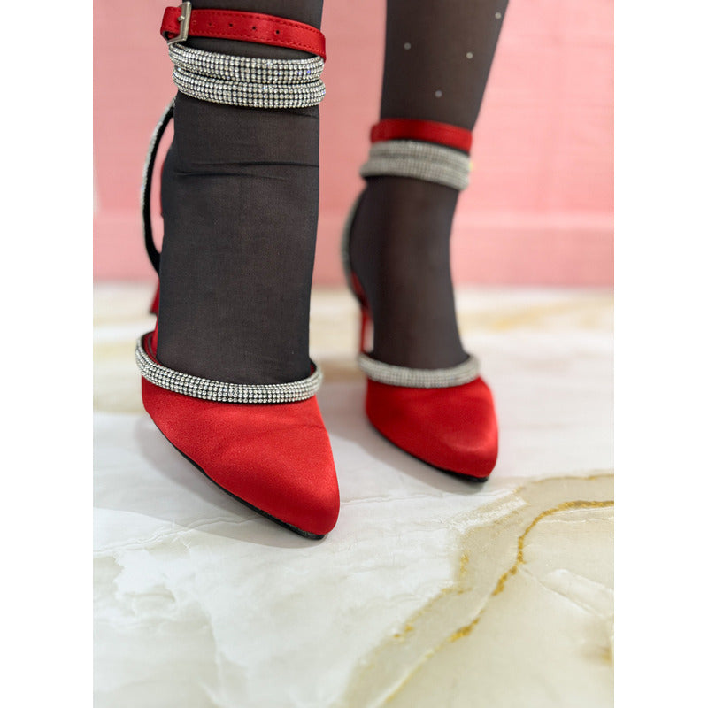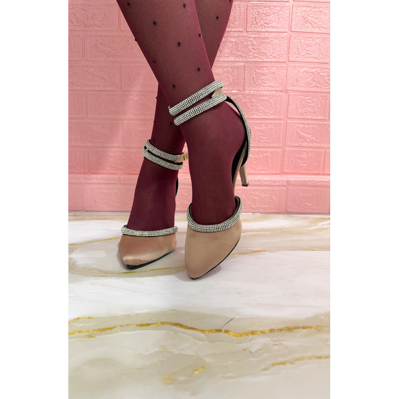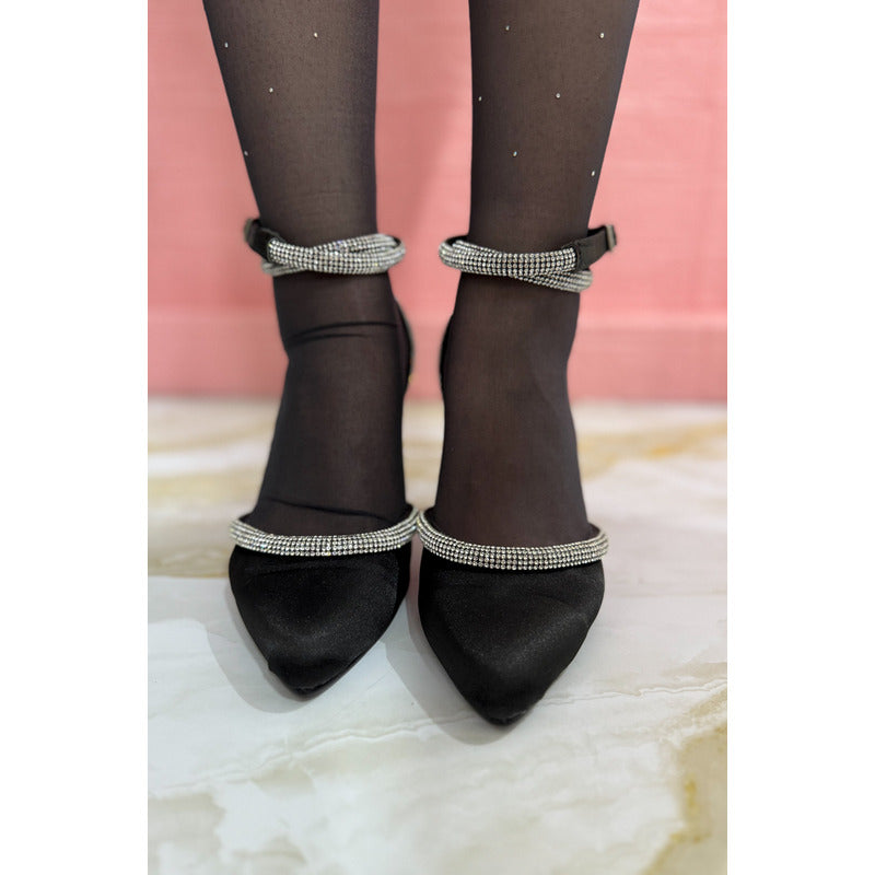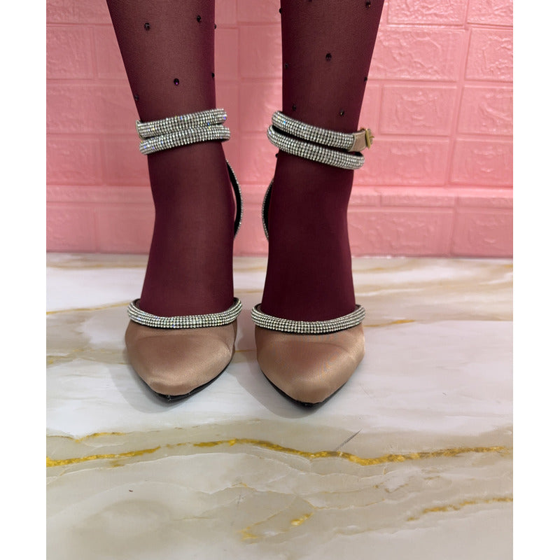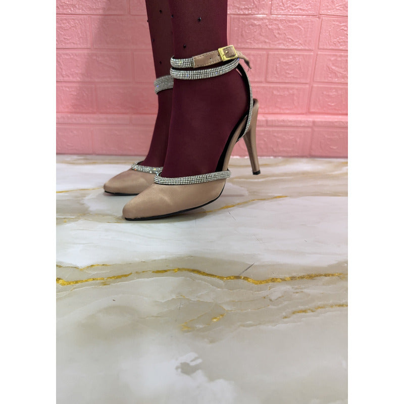 La protagonista del diseño es su tira brillante alrededor del tobillo, adornada con detalles destellantes que capturan la luz y aportan ese efecto “wow” que hace destacar cada paso. Además, la pulsera ajustable con hebilla asegura un calce firme y cómodo.