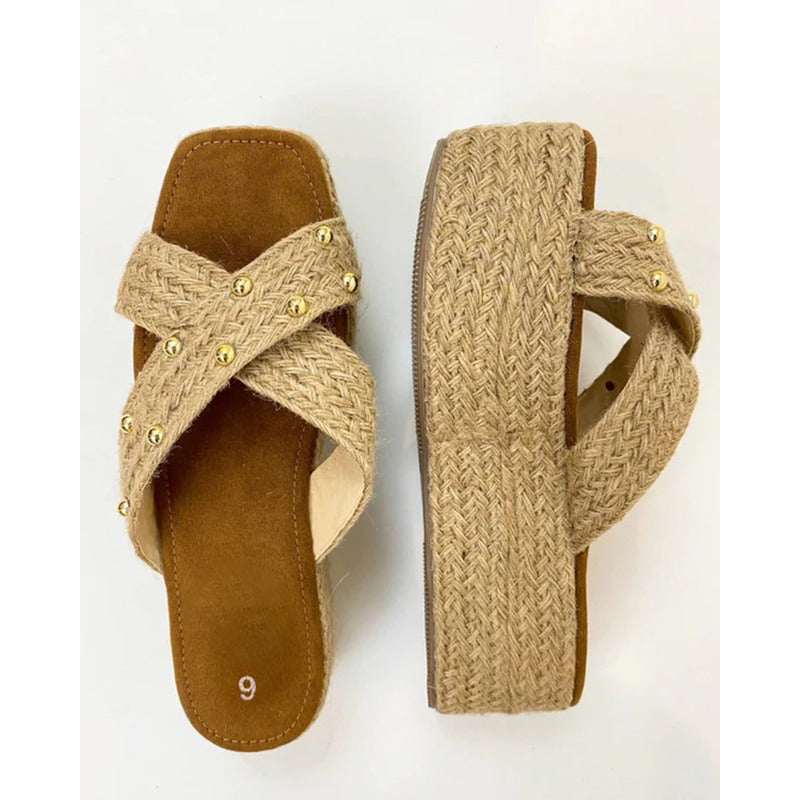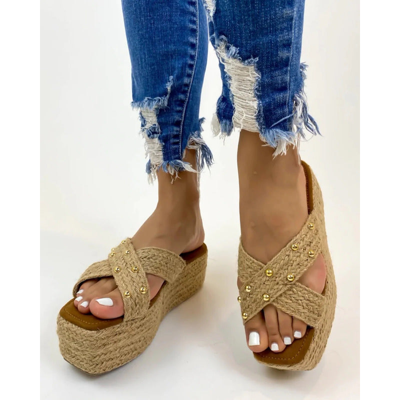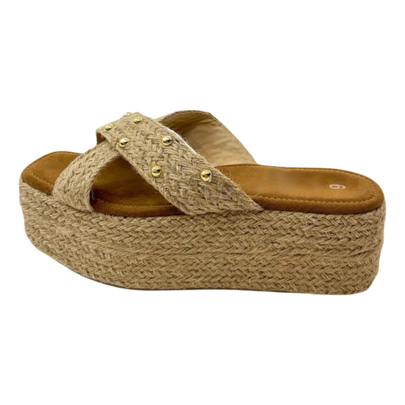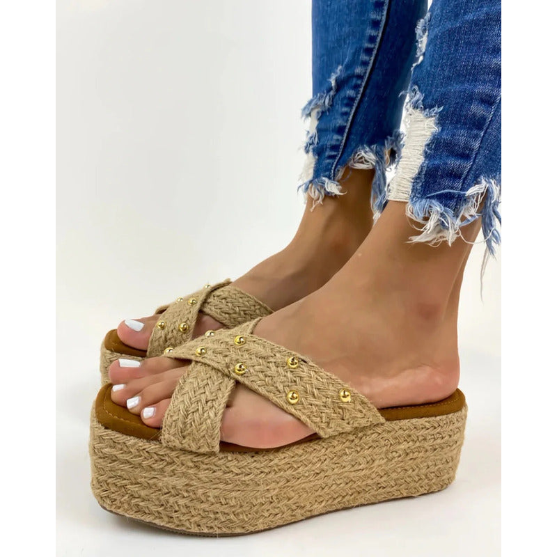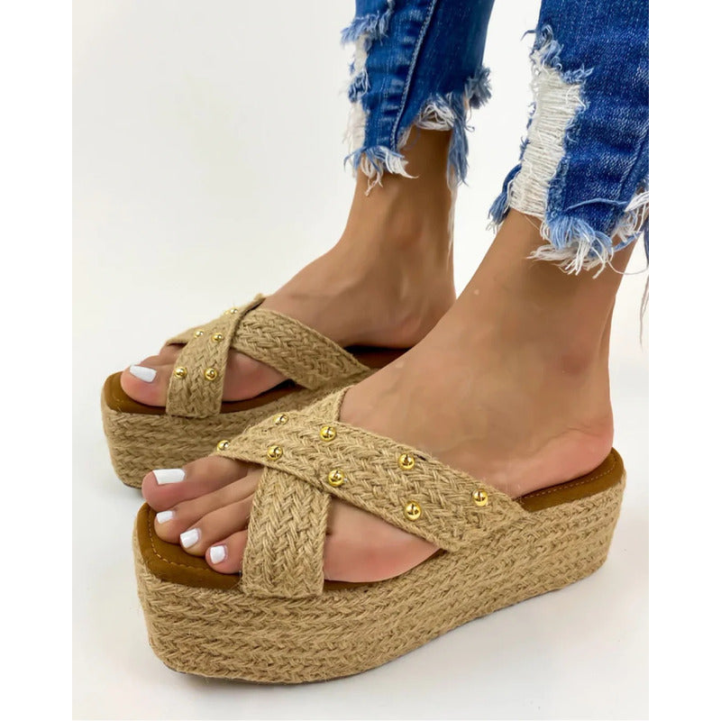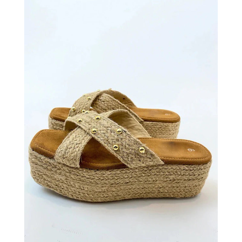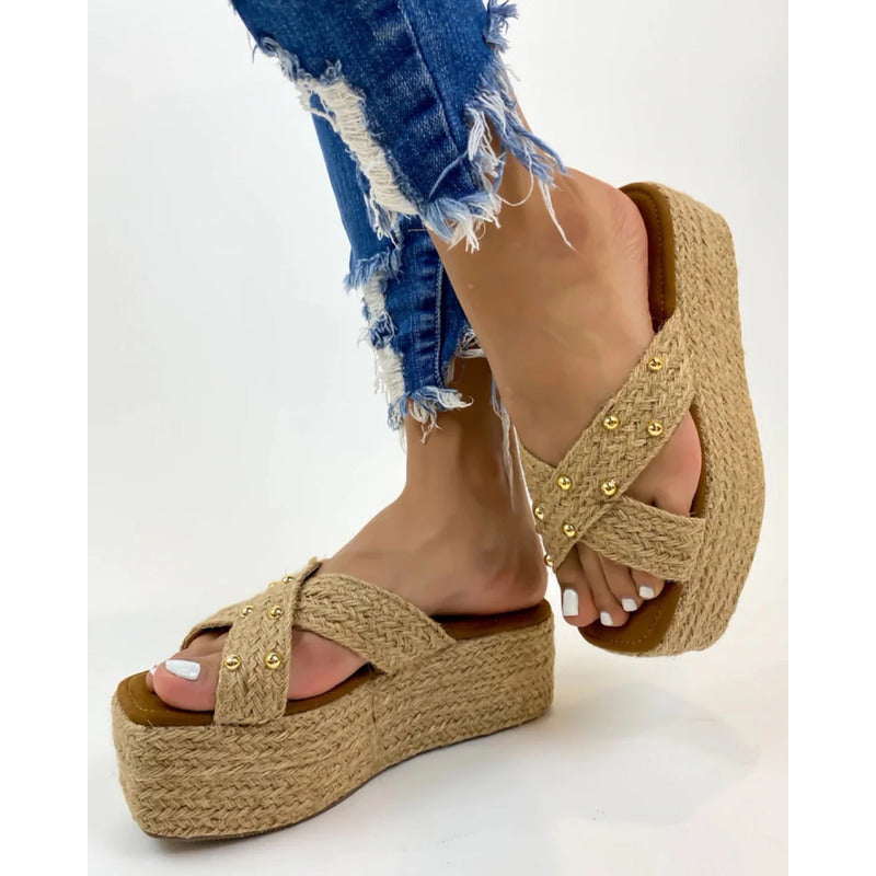 Plataformas Sandalia De Yute Tiras Cruzadas Con Tachuelas