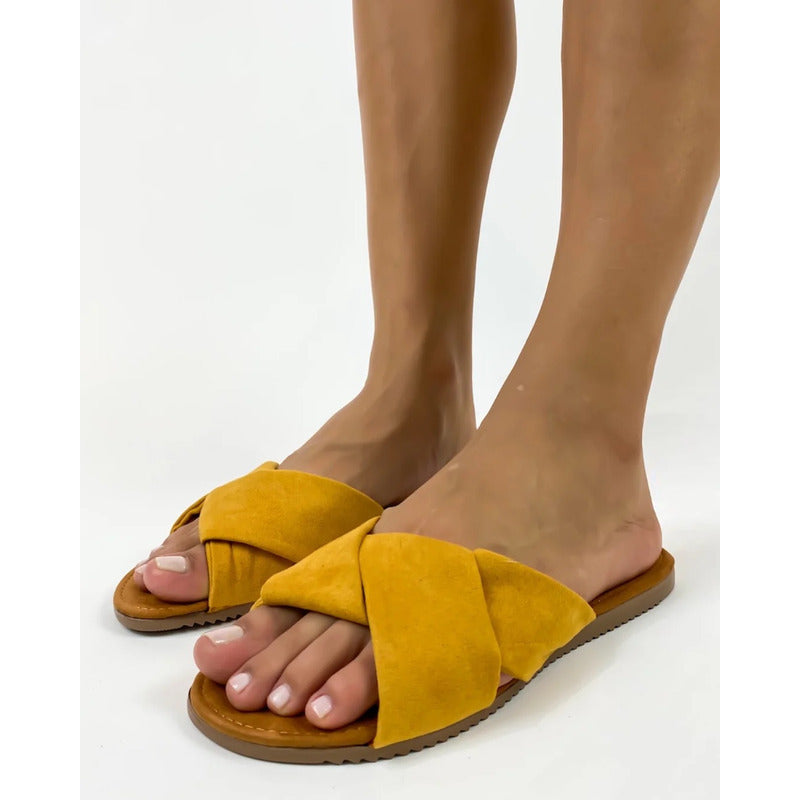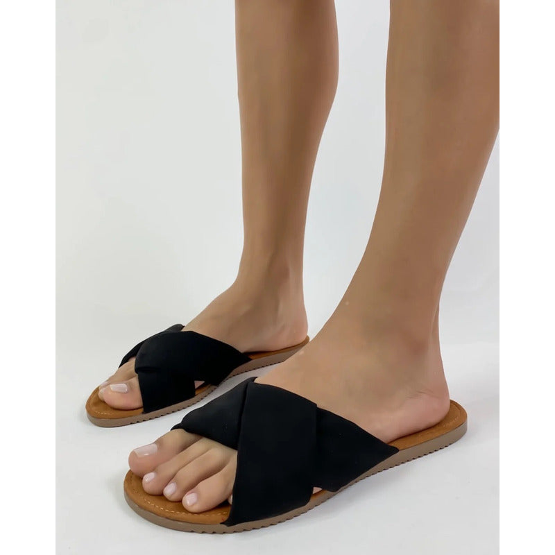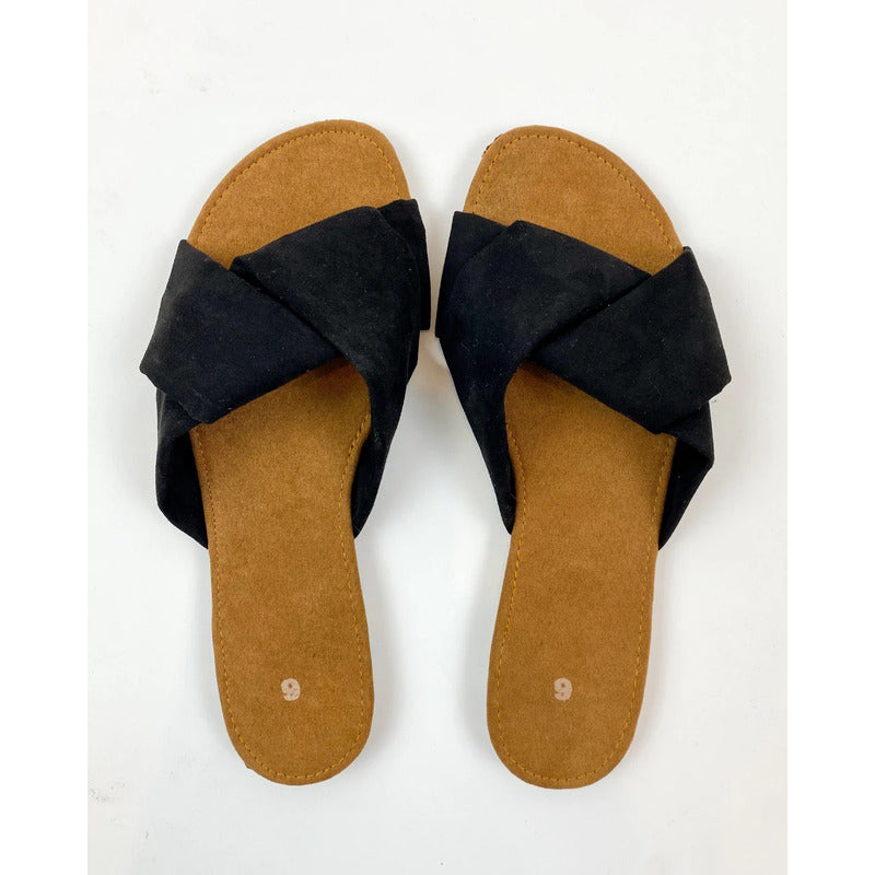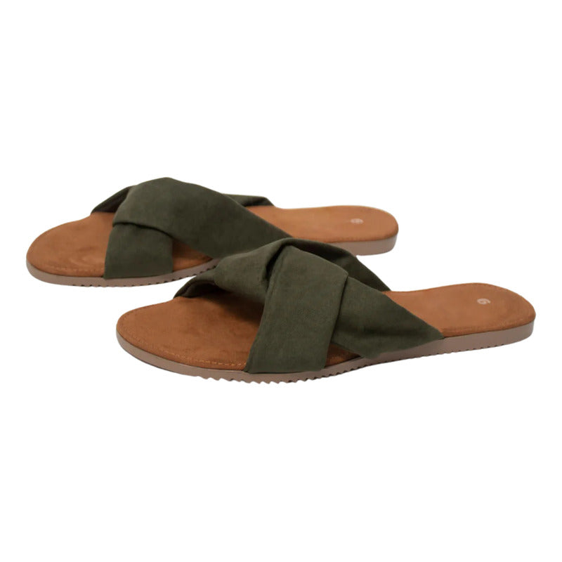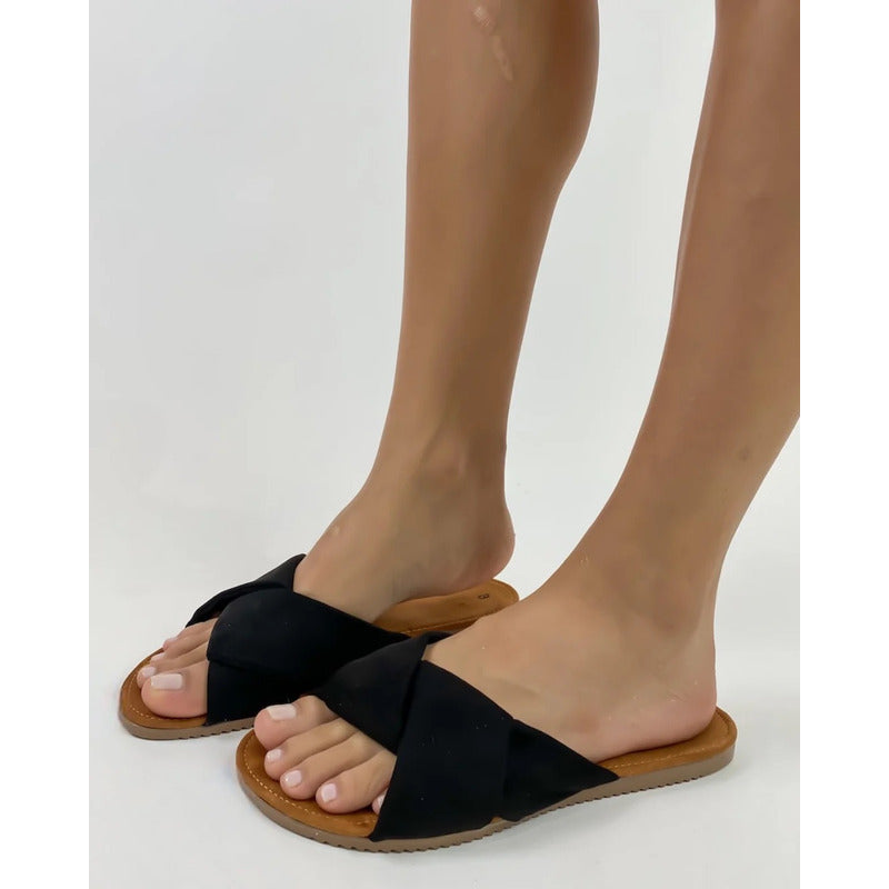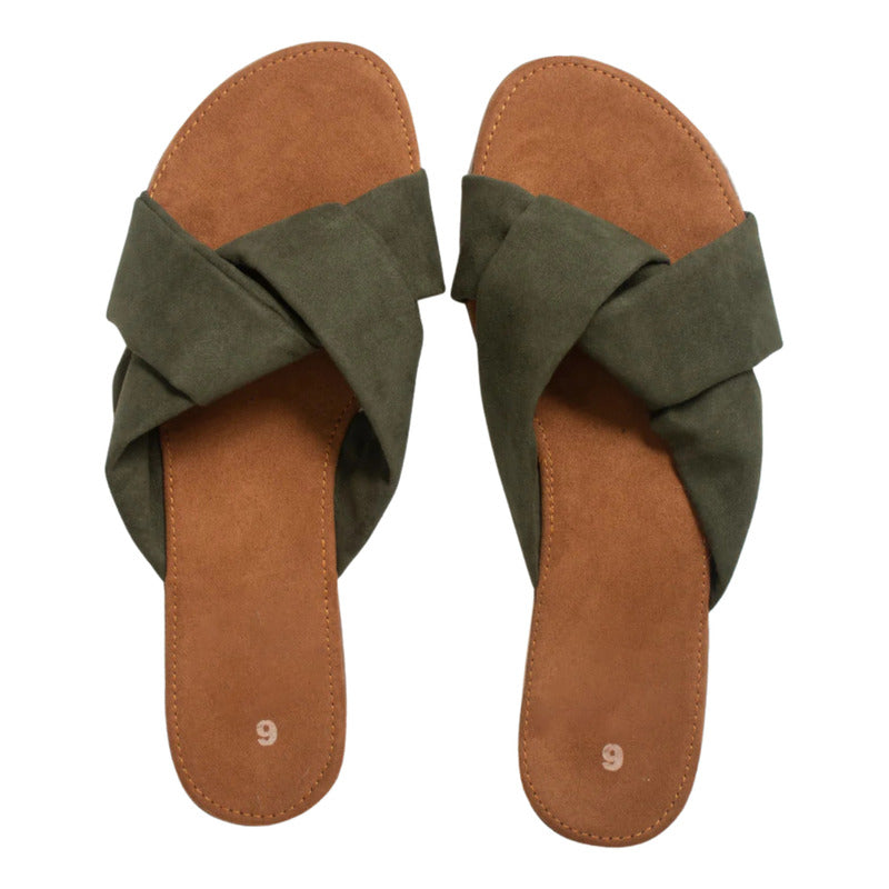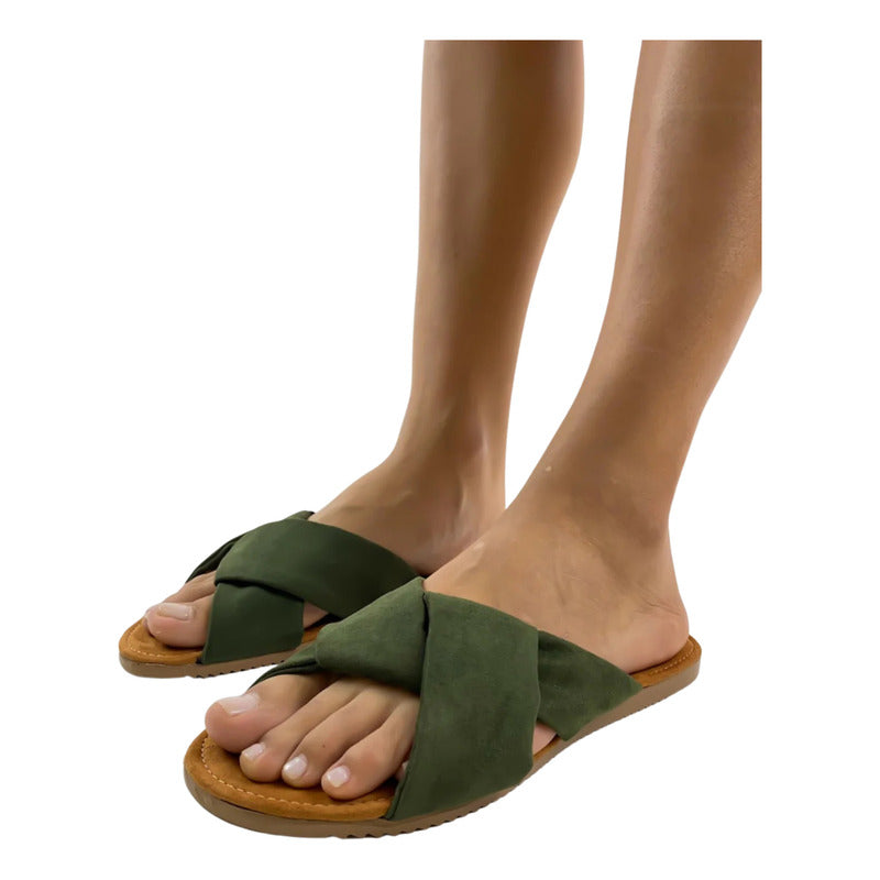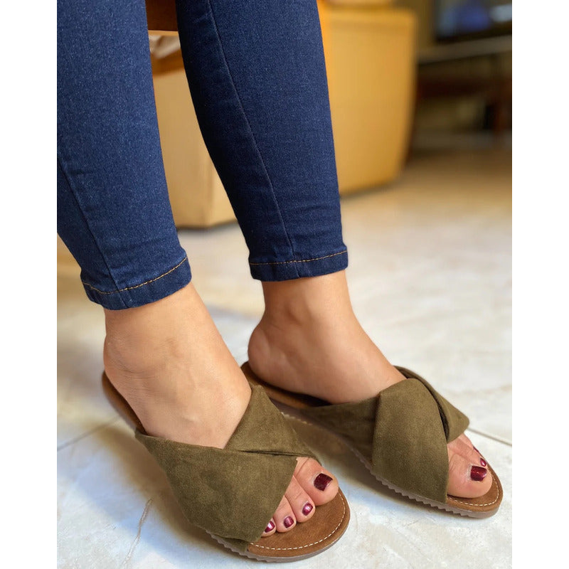 Sandalias Casuales De Piso Con Tiras Cruzadas Gamuza