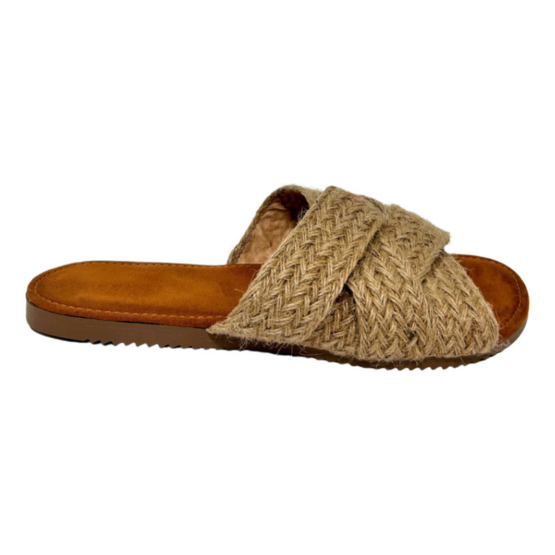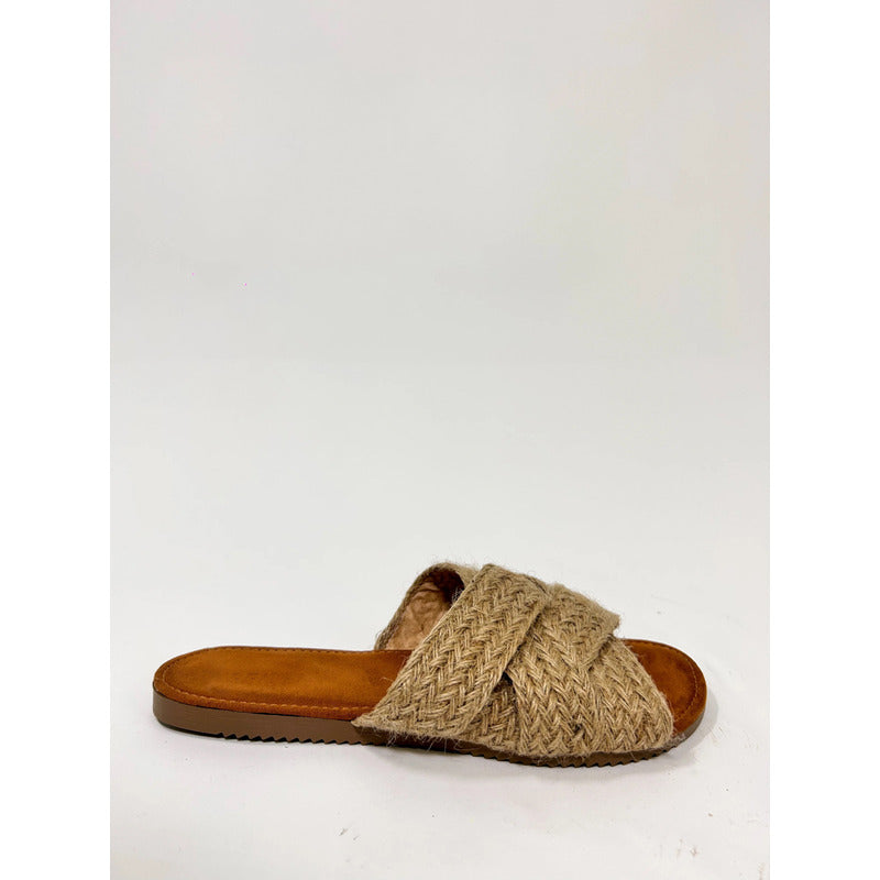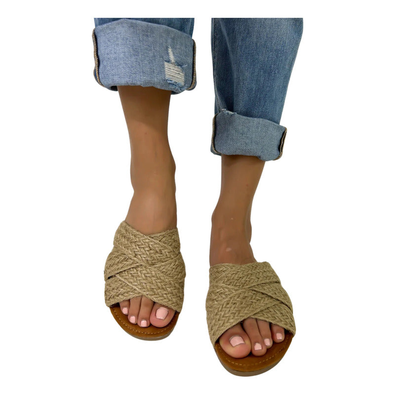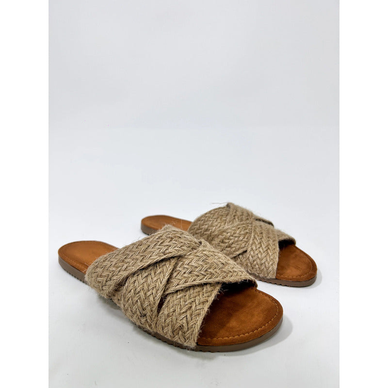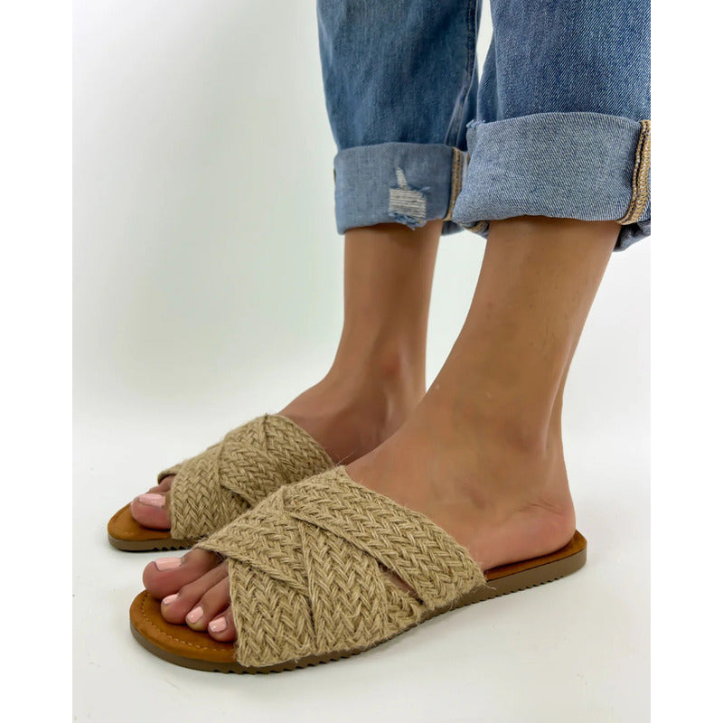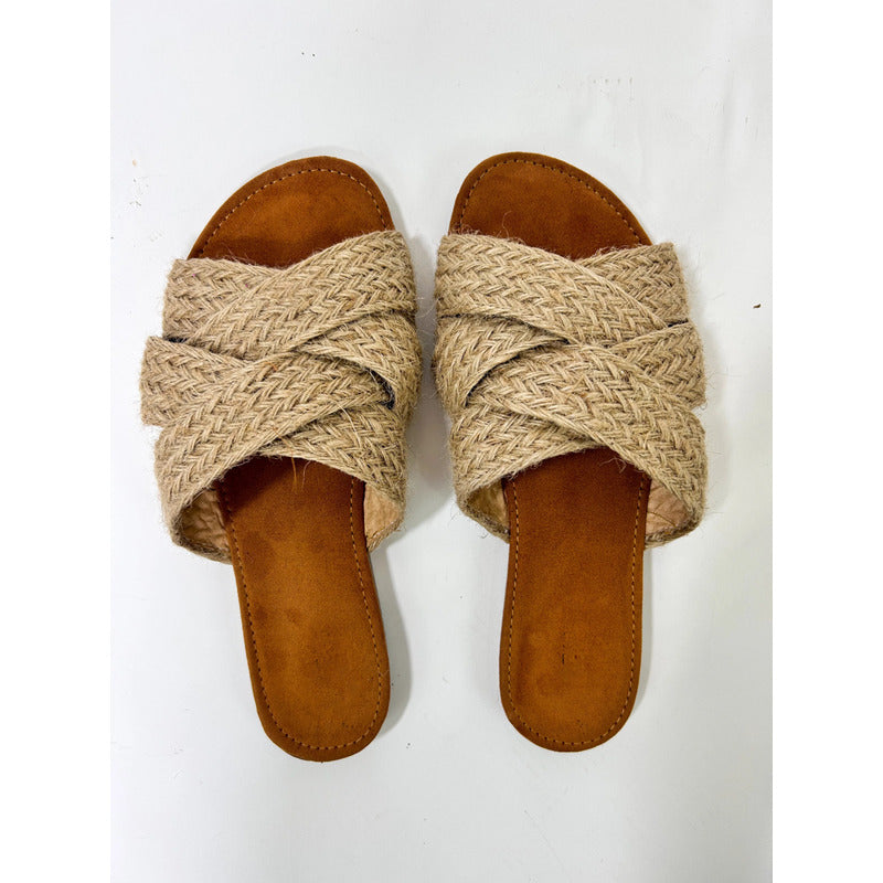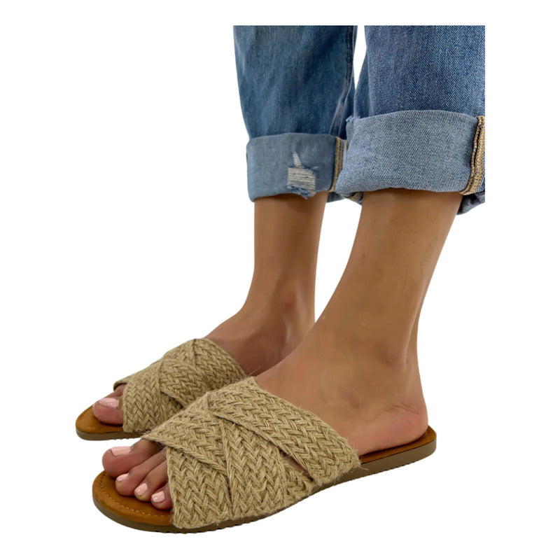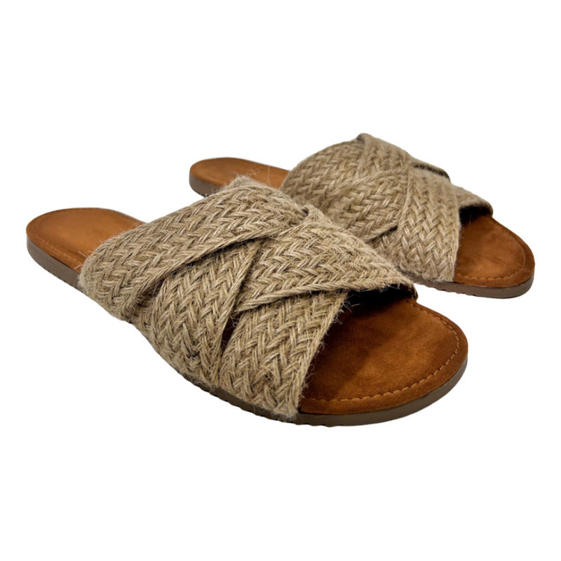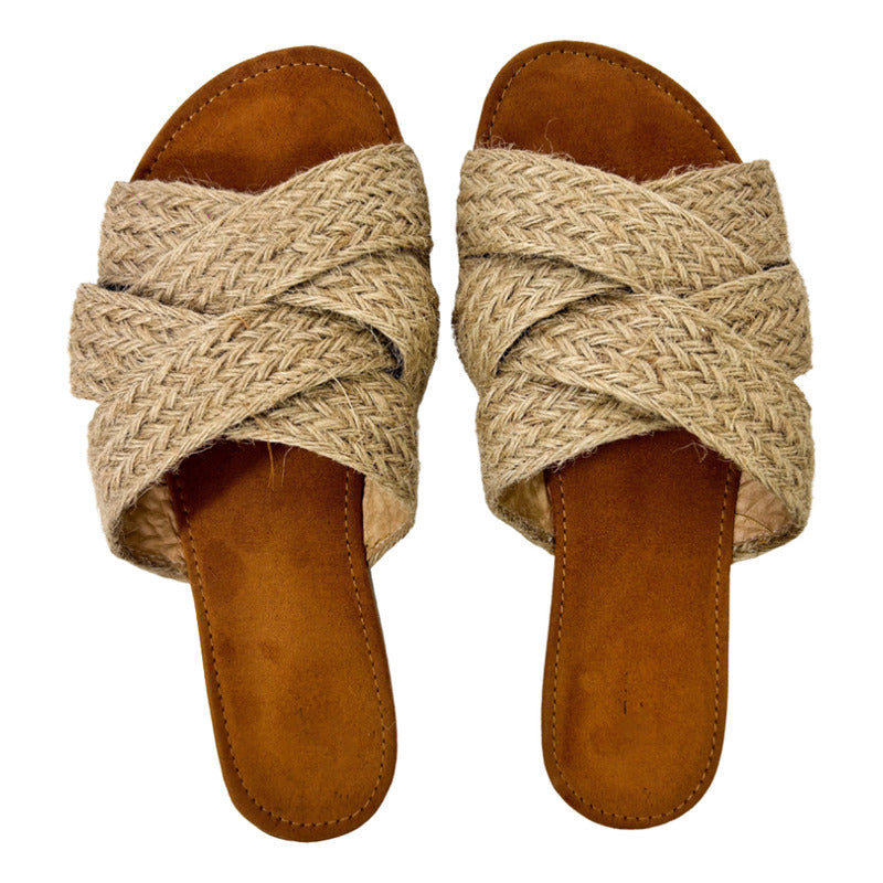 Sandalias Casuales De Piso Con Tiras Cruzadas Yute