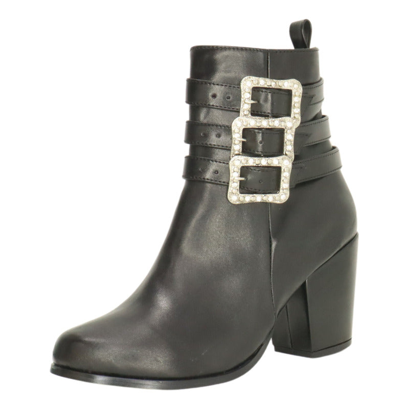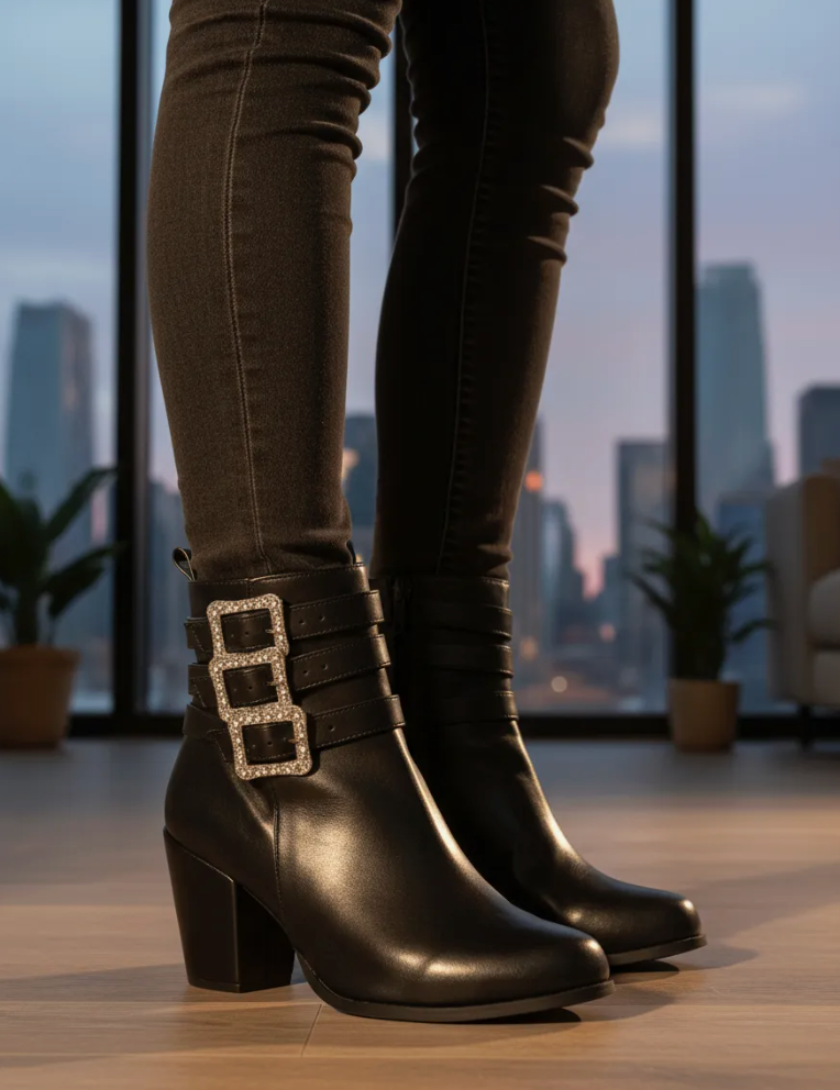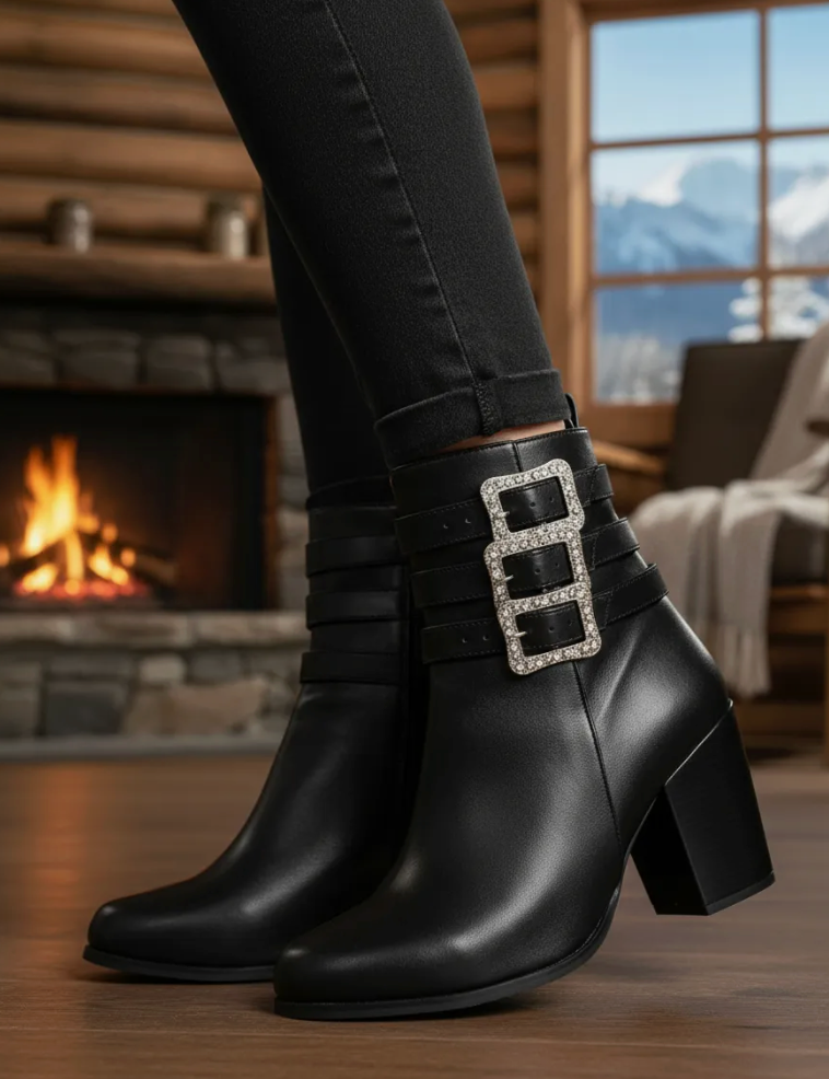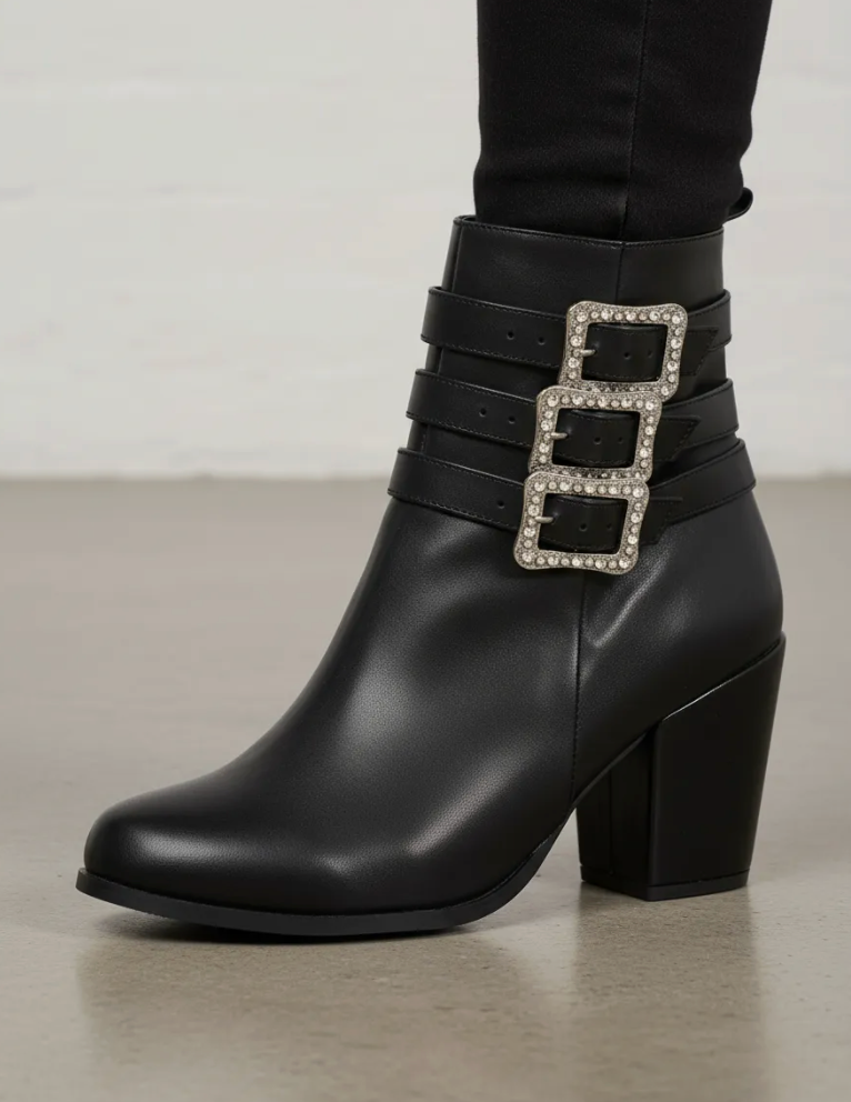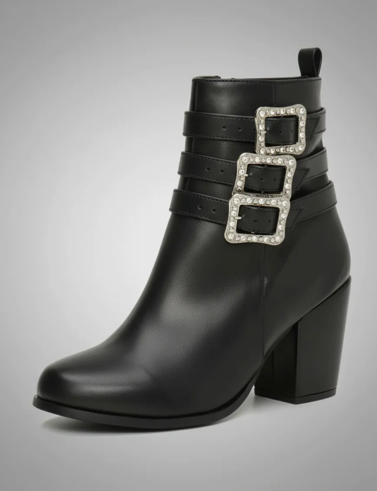 Bota Cordelia – Botín Elegante con Hebillas de Brillo y Tacón Medio