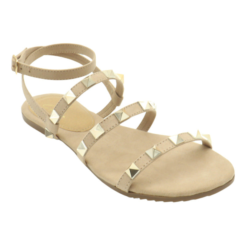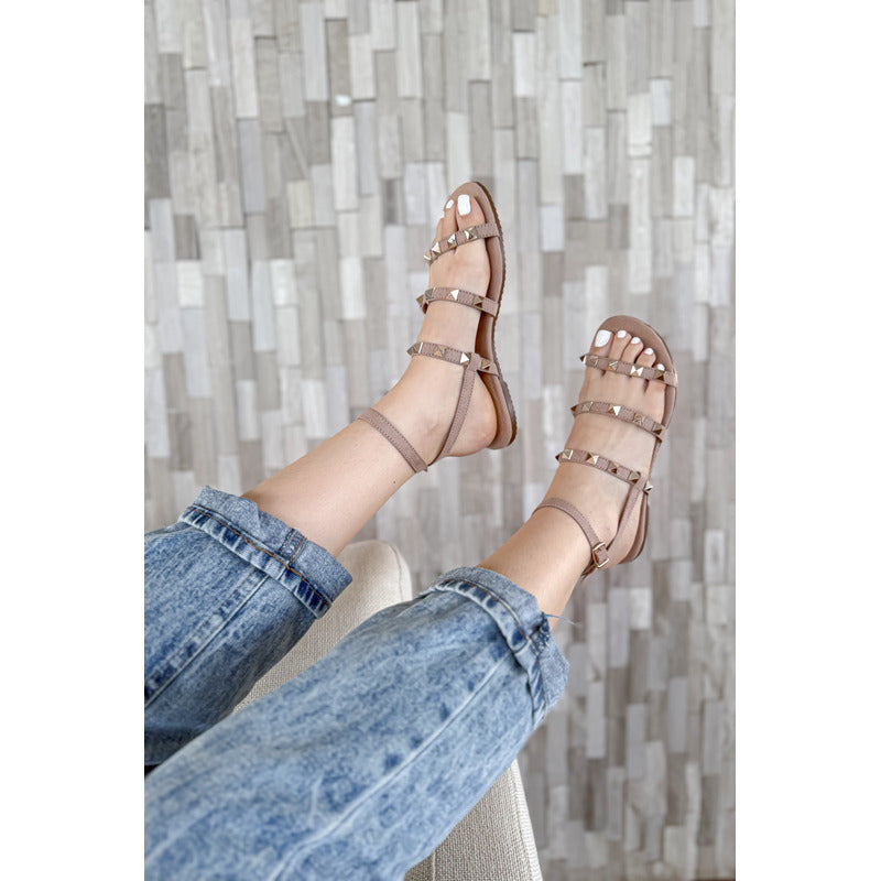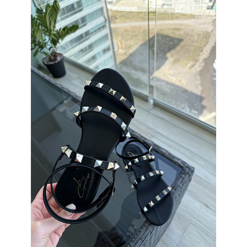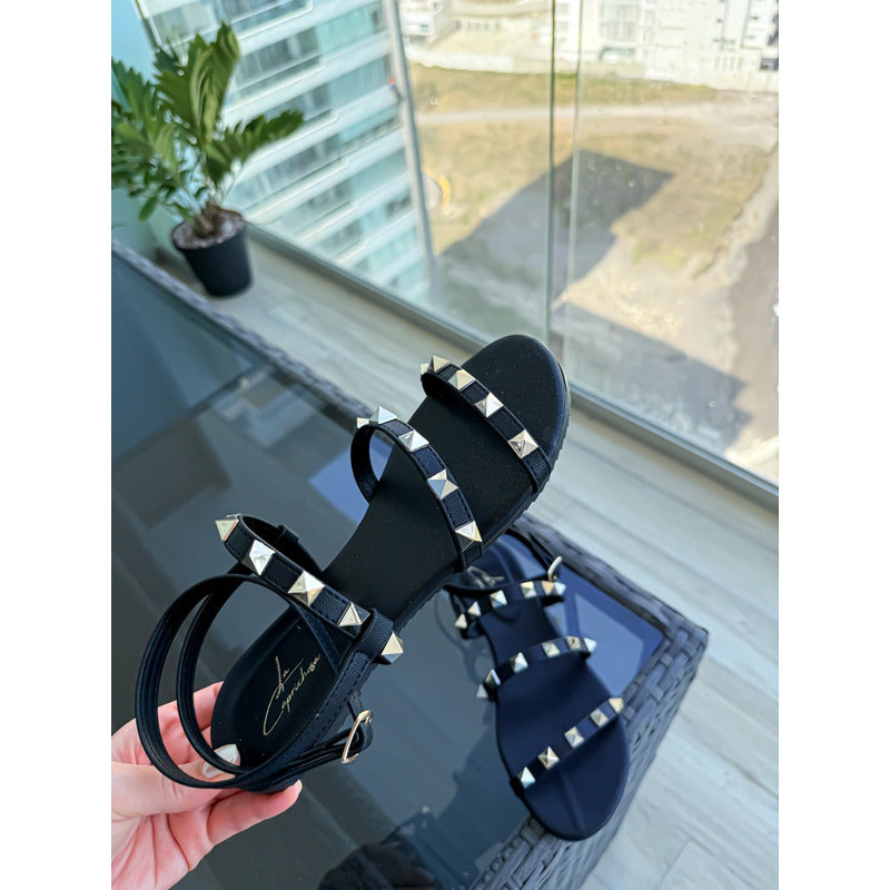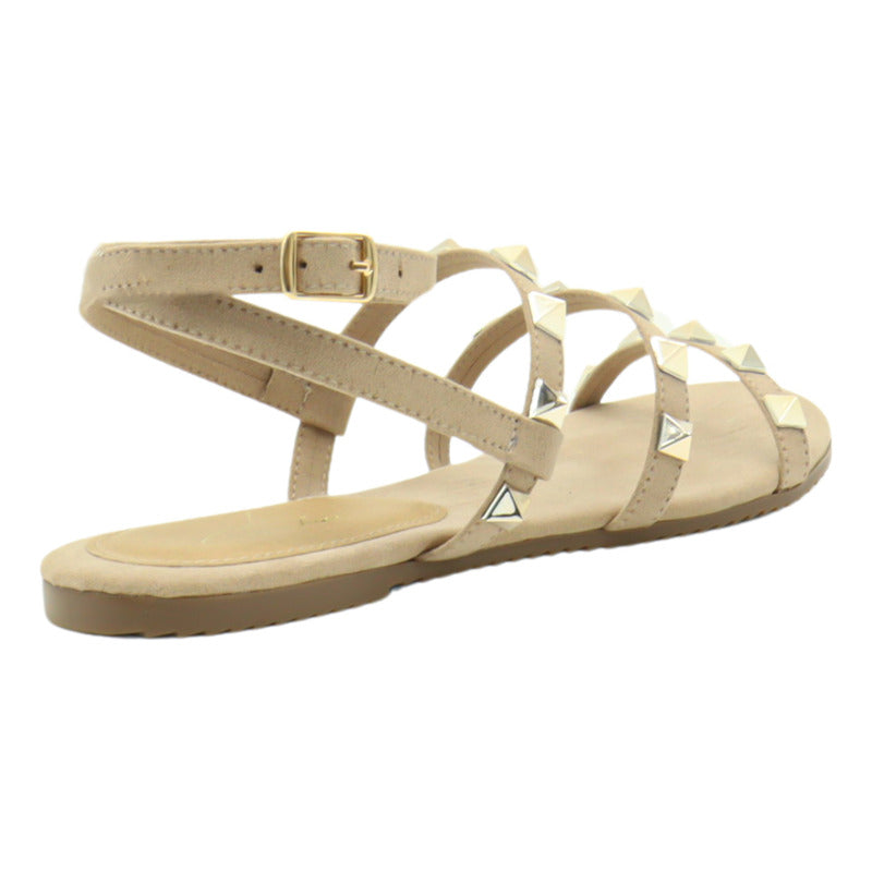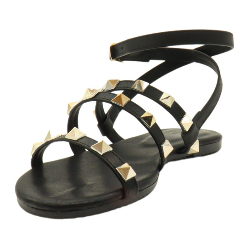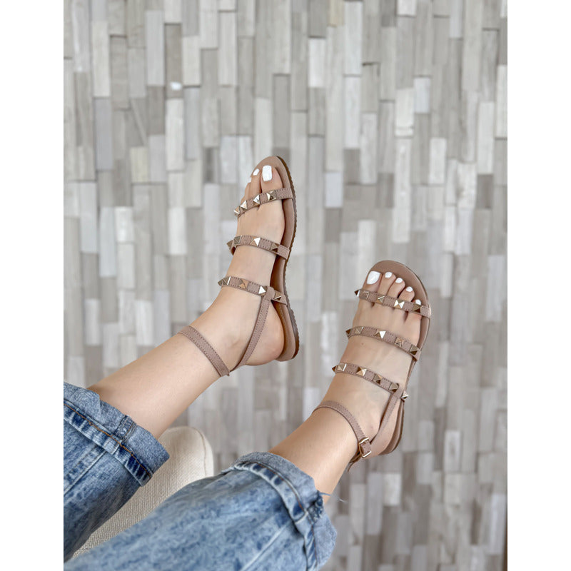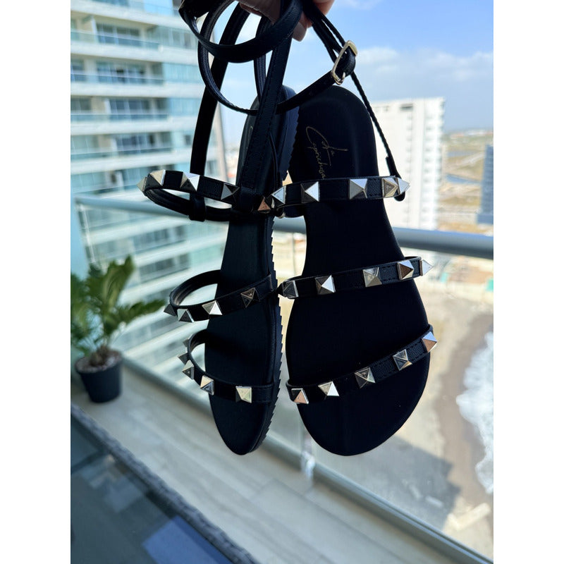 Huaraches Tiras Con Estoperoles, Sandalias Piso Para Mujer