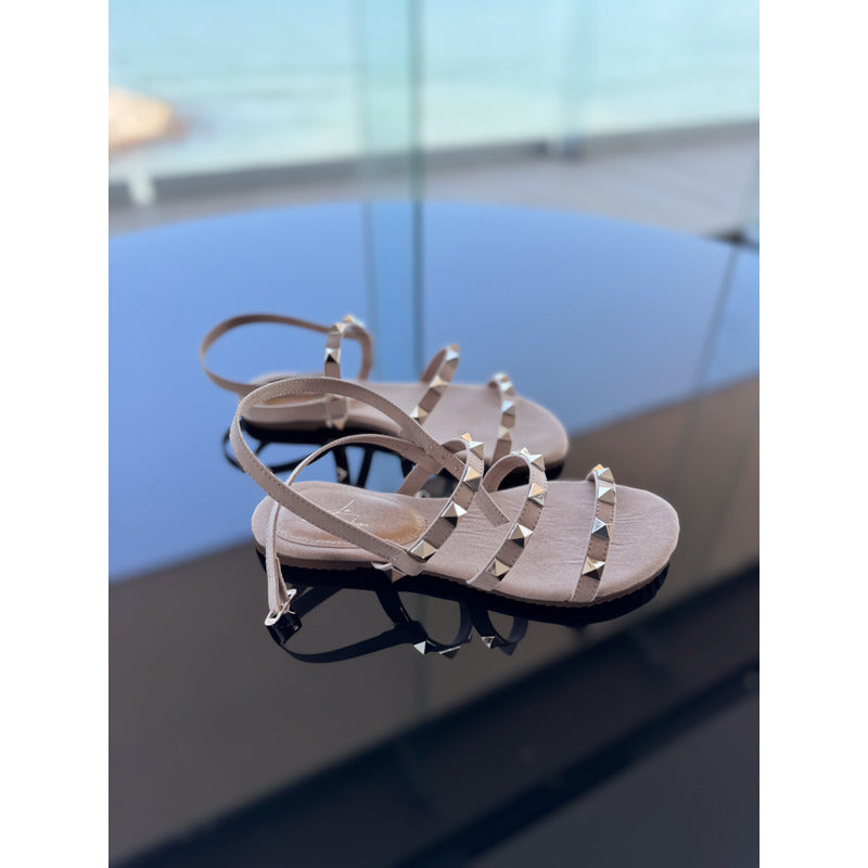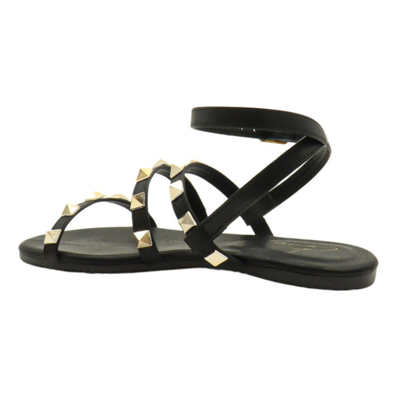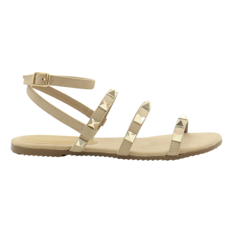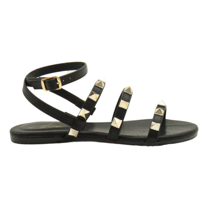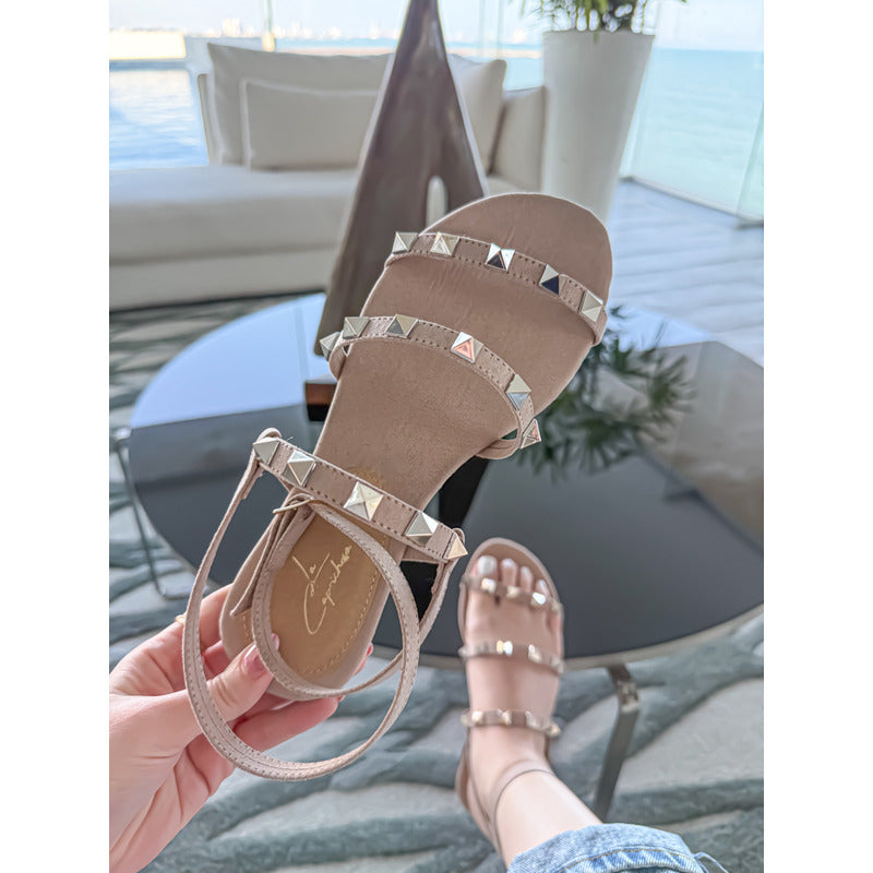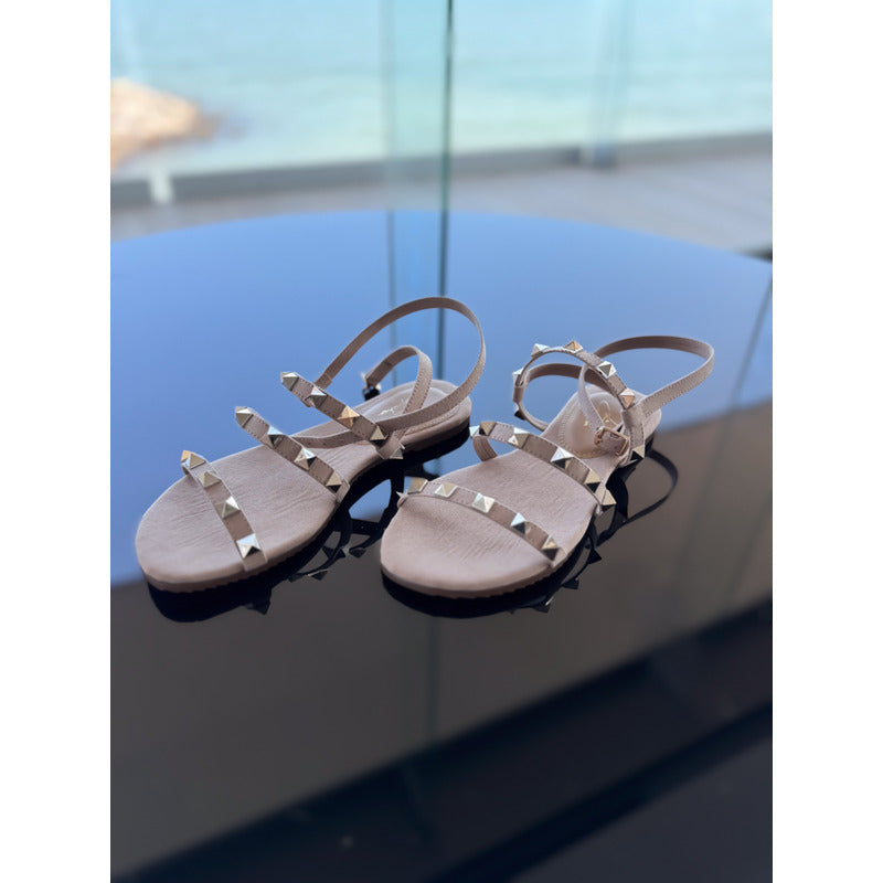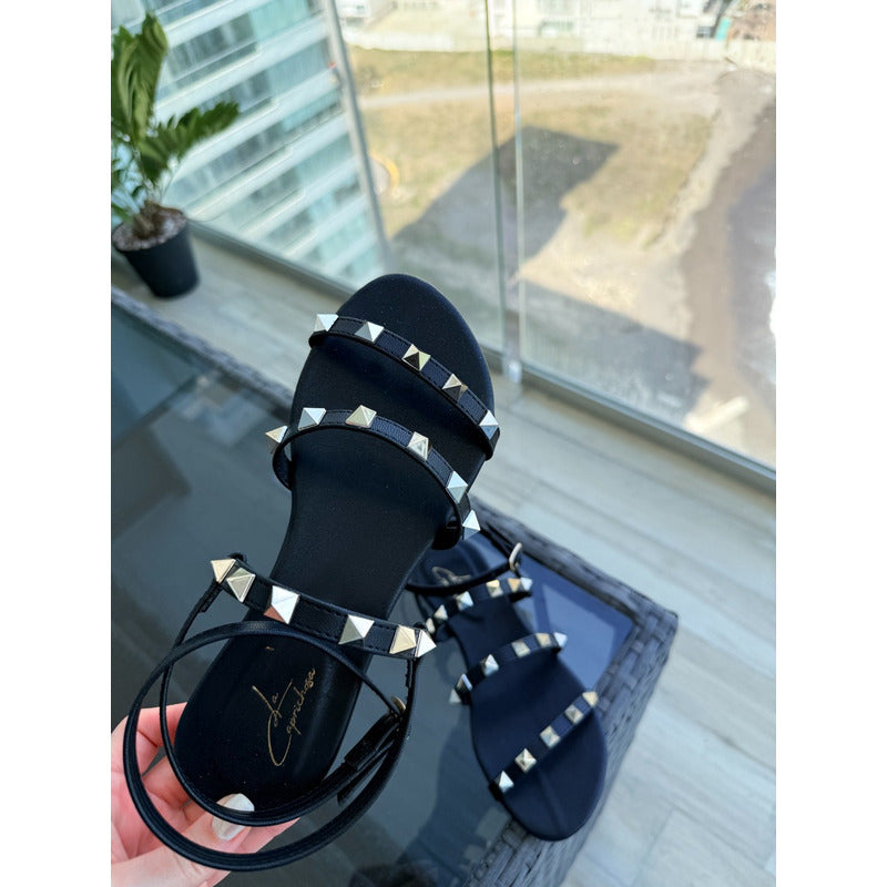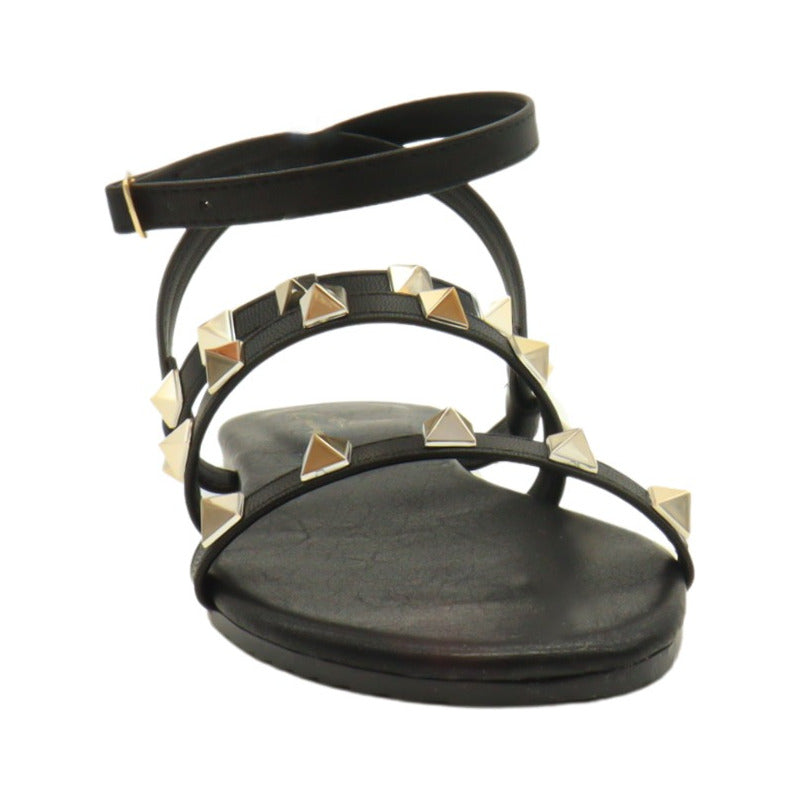 Huaraches Tiras Con Estoperoles, Sandalias Piso Para Mujer