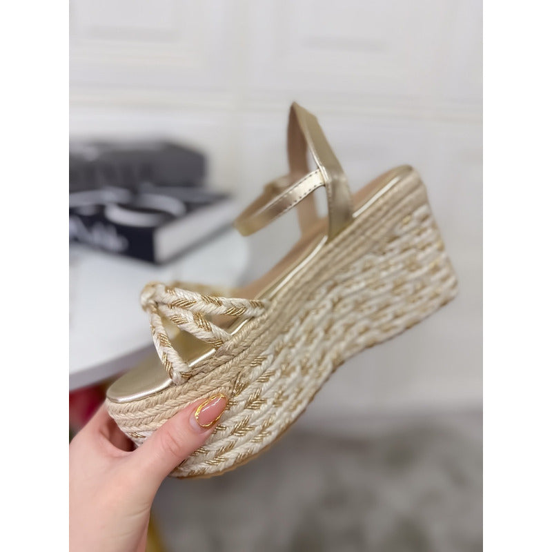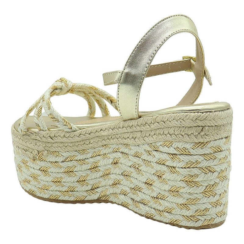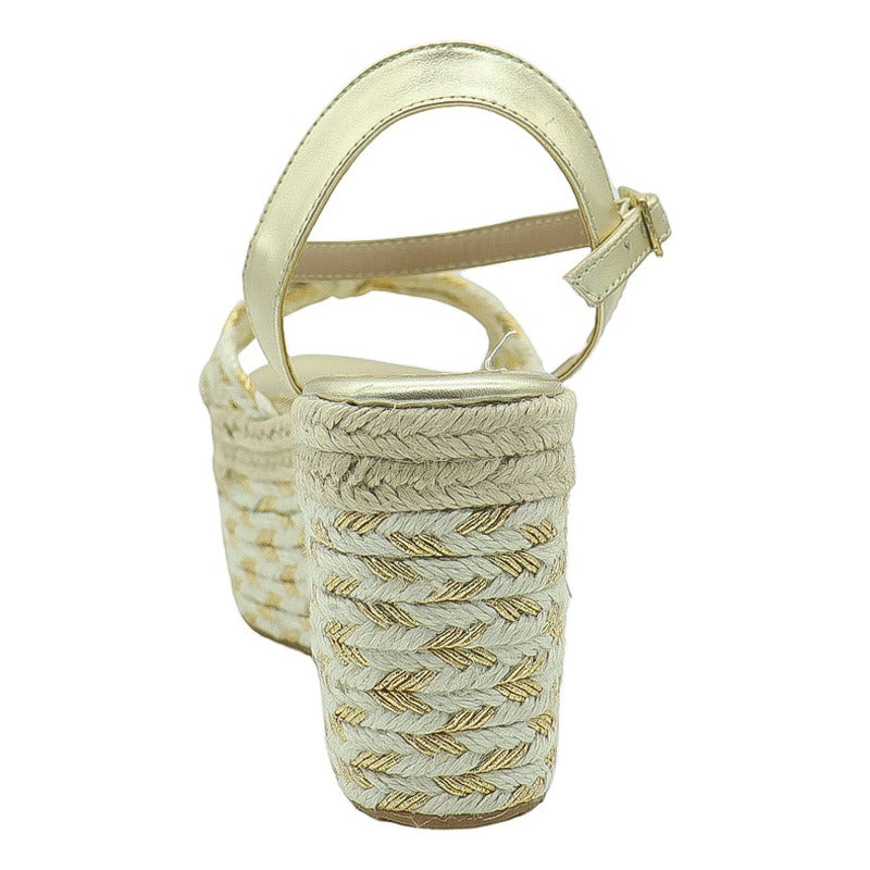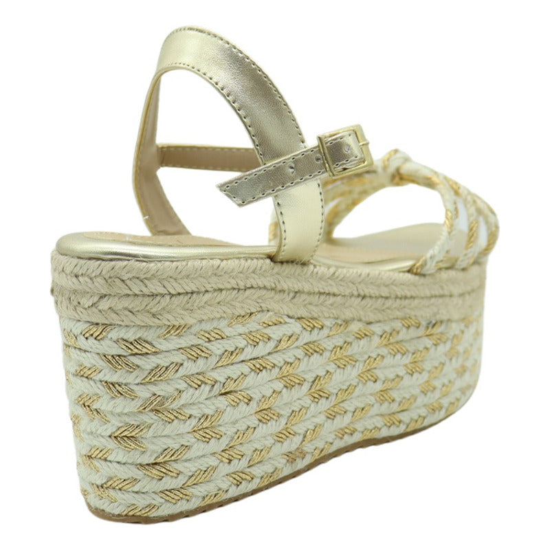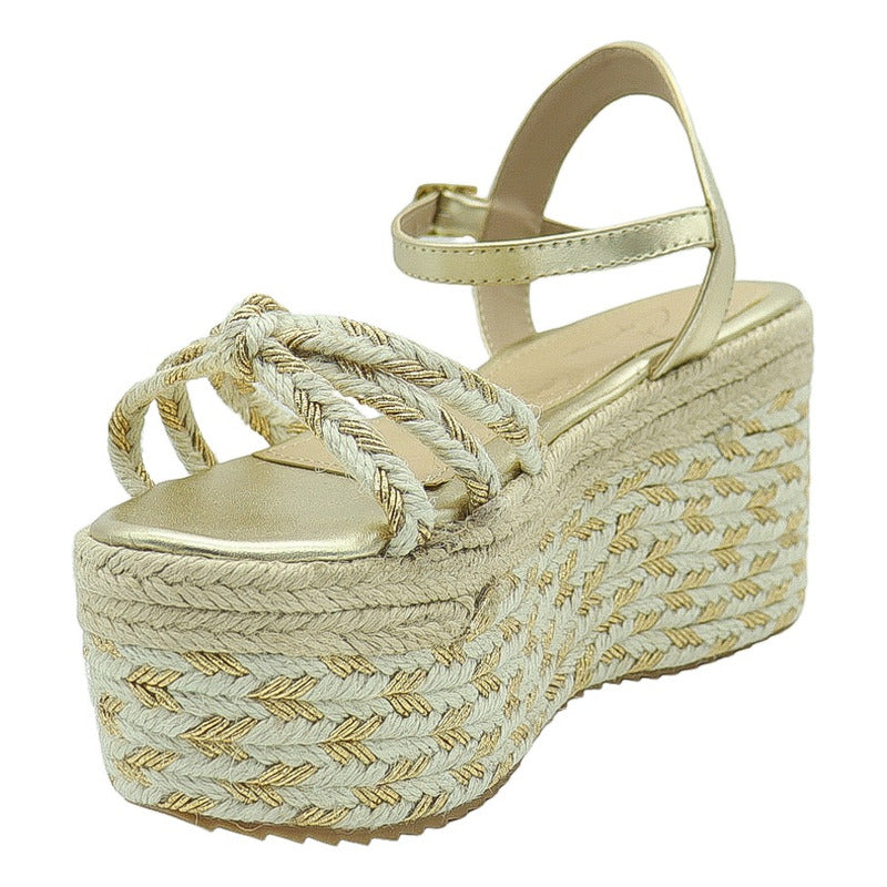 ⭐ Elvira – Sandalia de Plataforma en Yute con Detalle Trenzado Dorado