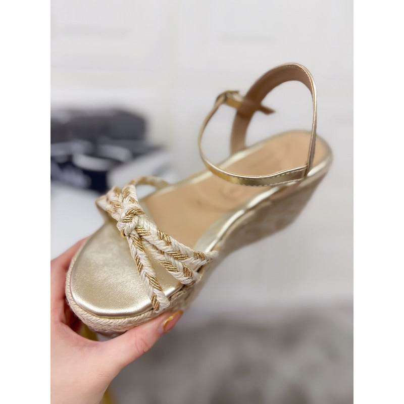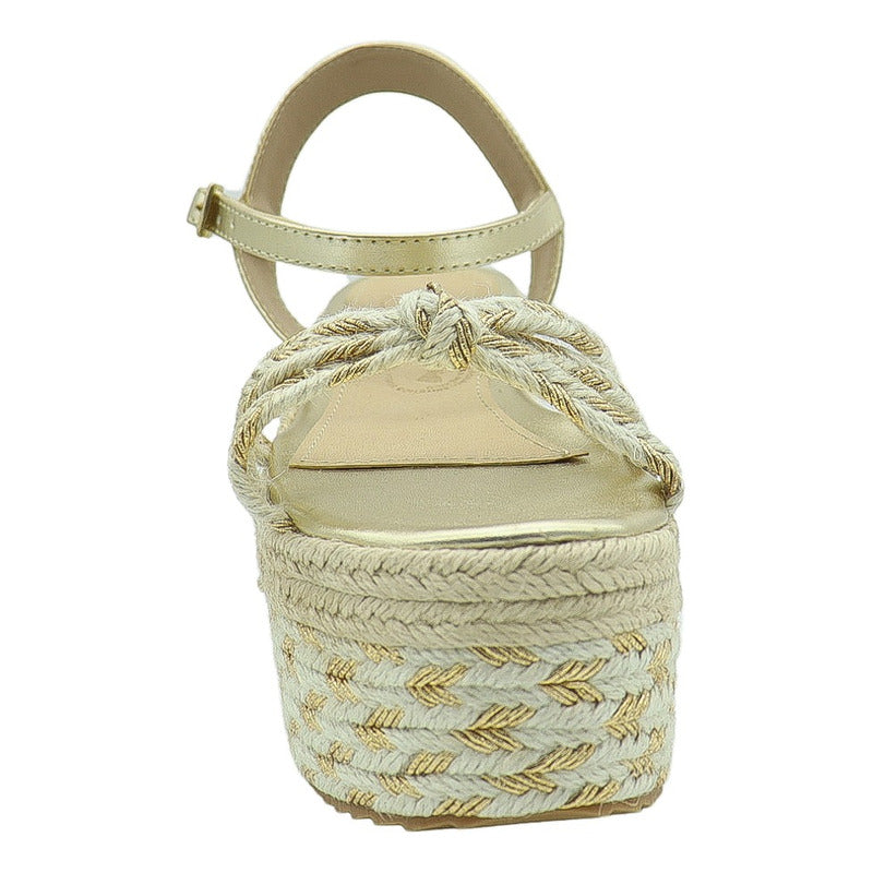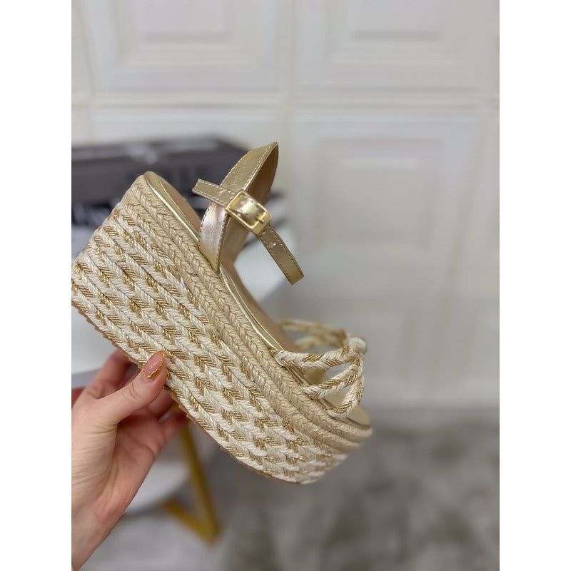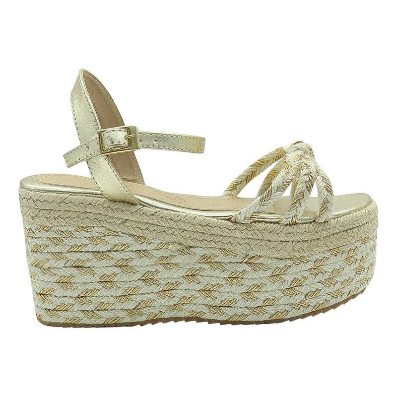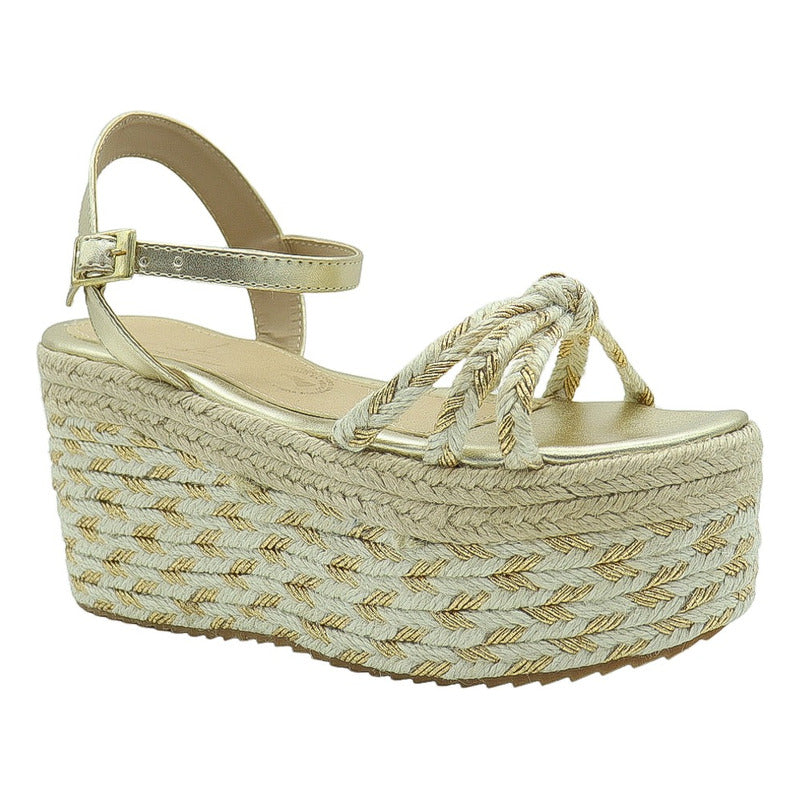 ⭐ Elvira – Sandalia de Plataforma en Yute con Detalle Trenzado Dorado