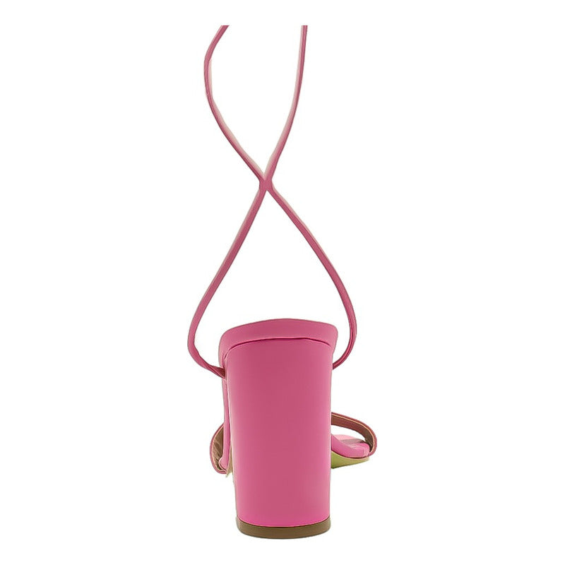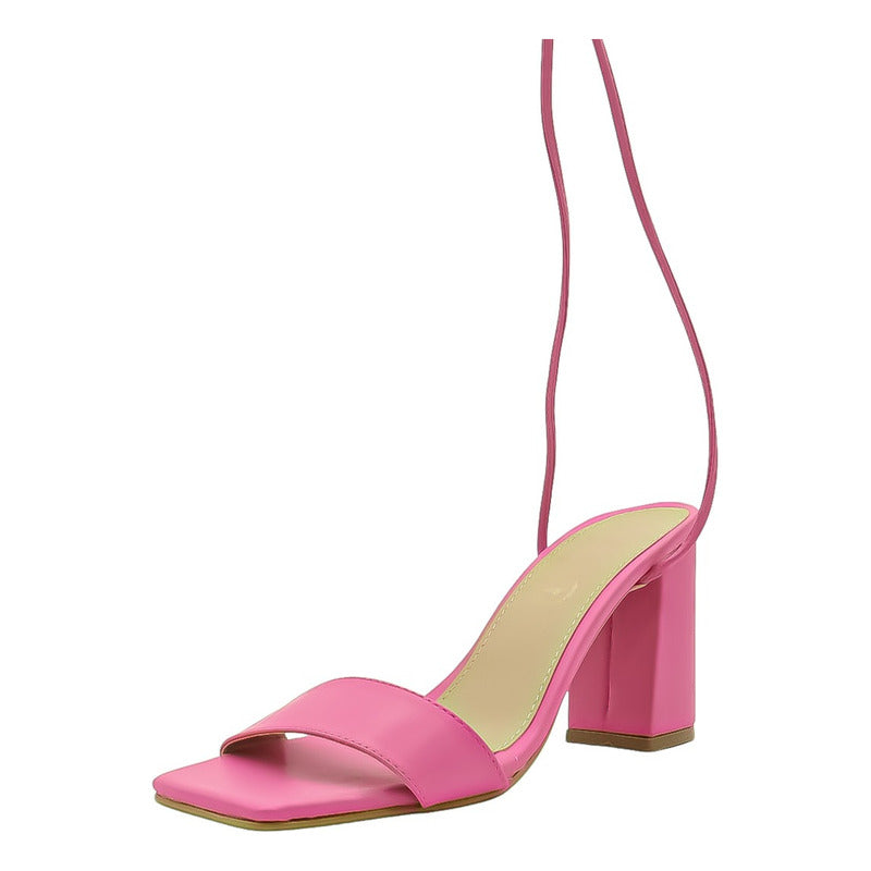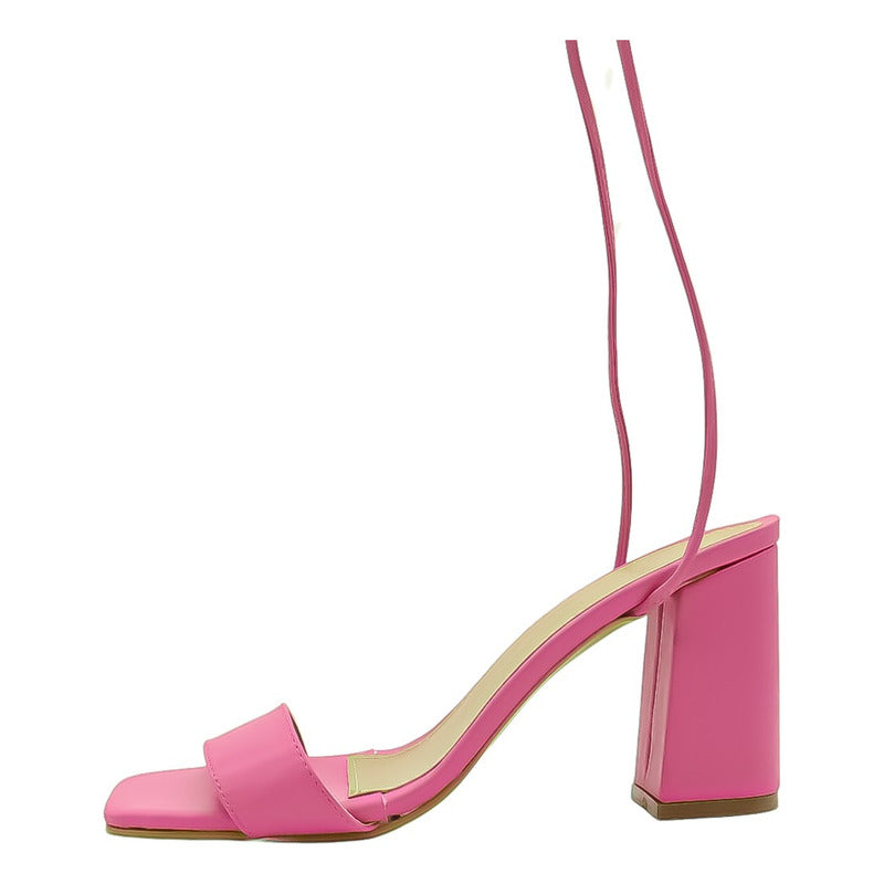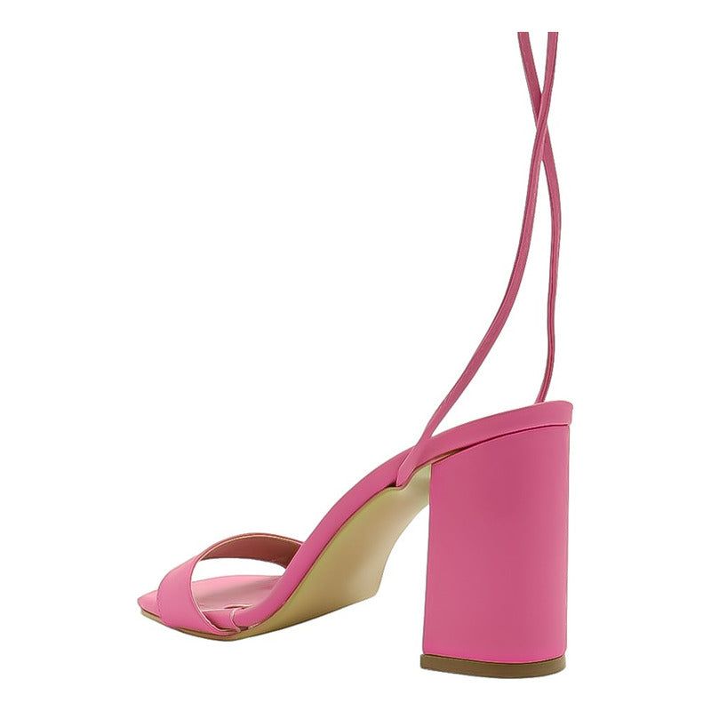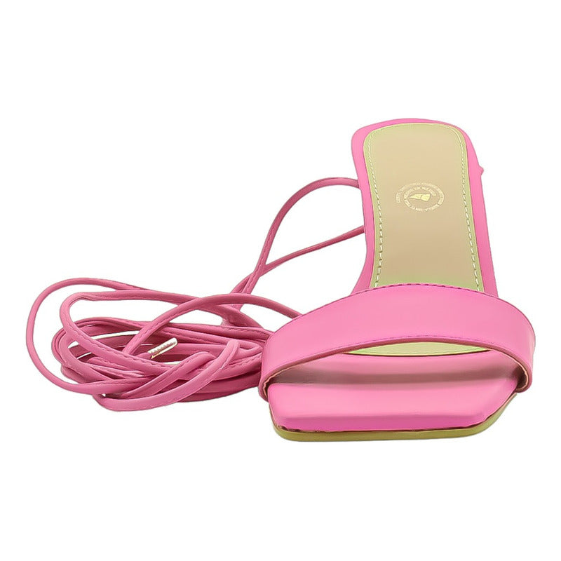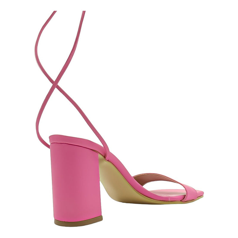 Zapatillas Sandalias Altas Tacón Ancho Gladiador Rosa Chicle 25 Mx