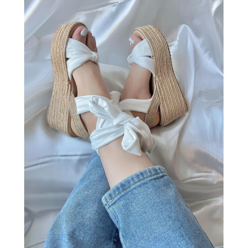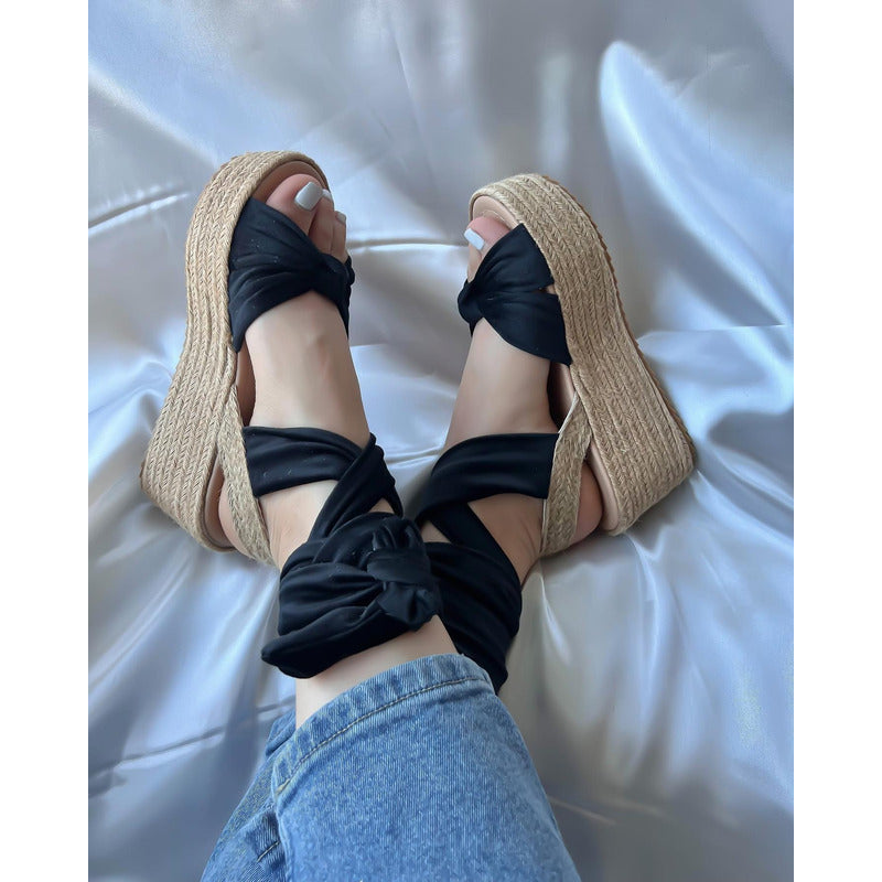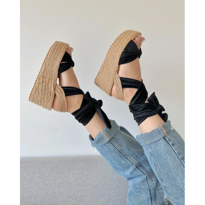 Modelo Nicky - Sandalia Plataforma Suela Corrida de Yute con Amarre al Tobillo