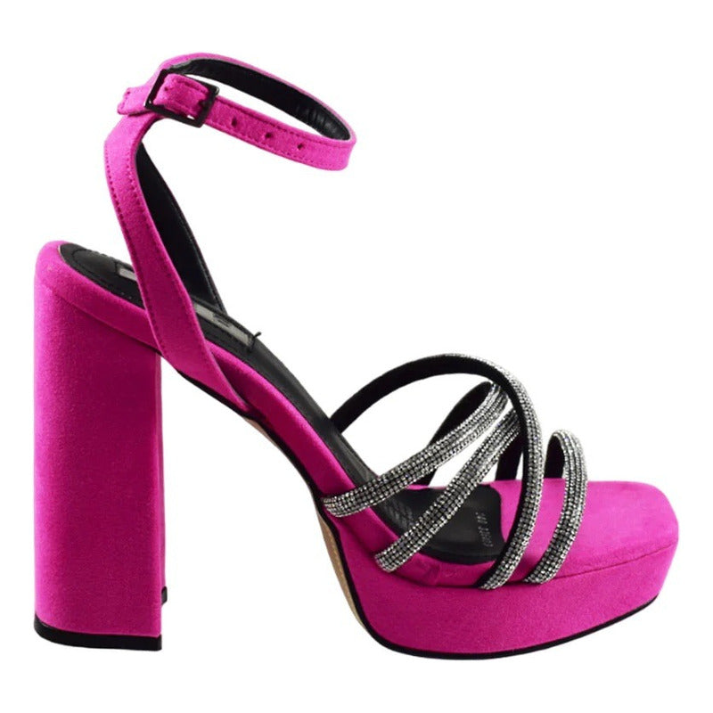 Zapatillas Tacón Grueso Plataformas Dama Tiras Brillos