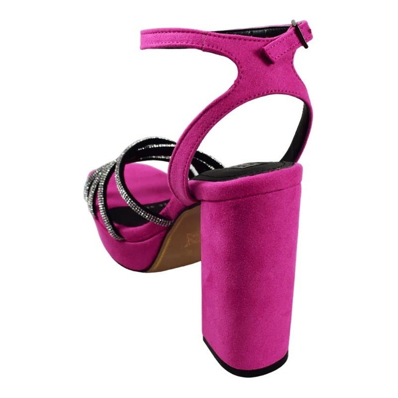 Espectaculares Zapatillas o Sandalias Altas Tacón Grueso con tiras con Brillos. Hecho artesanalmente en México. -ALTURA: 12 CM