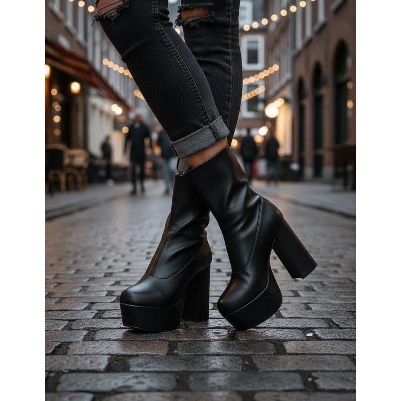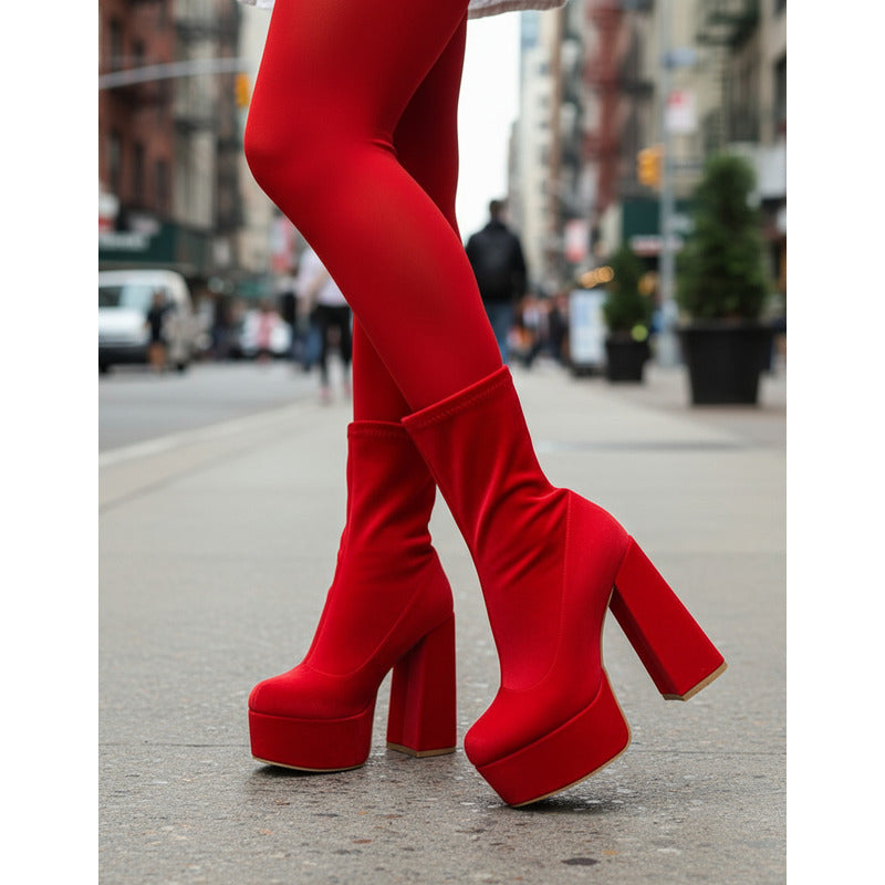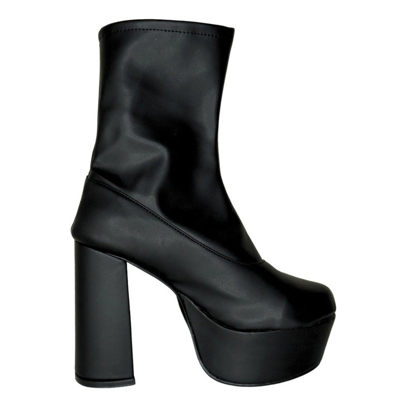 Hermosos, elegantes botas/botines tipo lycra con plataforma y tacón ancho ESPECÍFICACIONES: Altura tacón: 12 cm aprox. Altura Plataforma: 4 cm aprox. Material: Vinipiel Punta: Redonda Hechas a mano con los mejores estándares de calidad