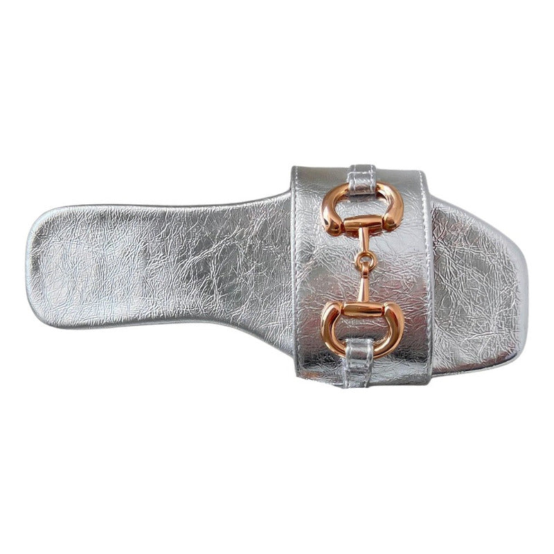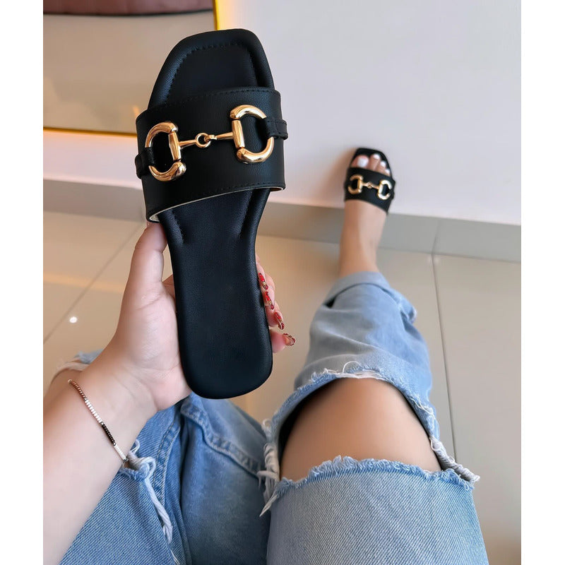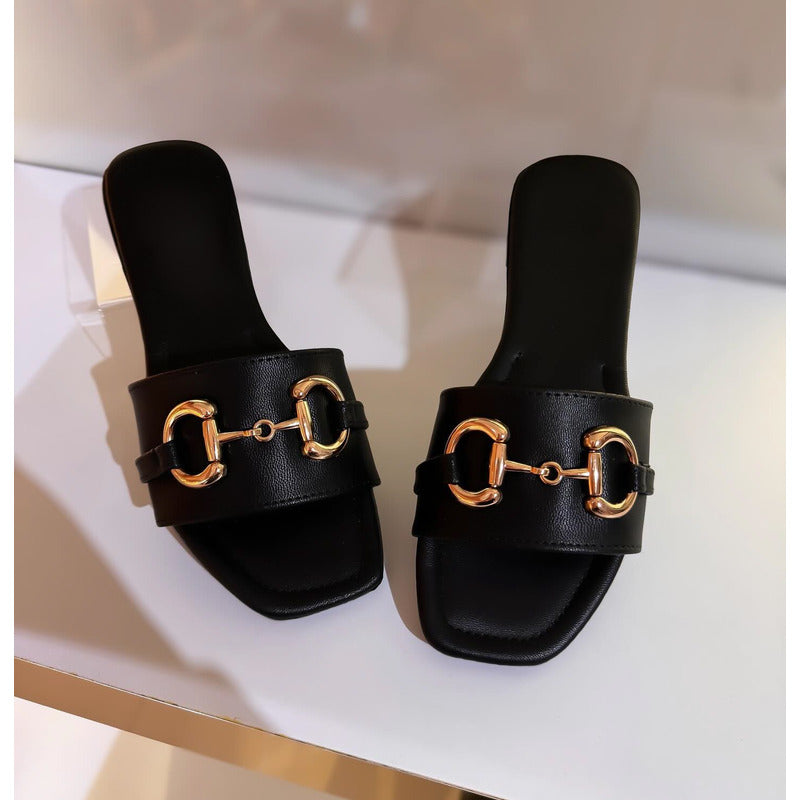 🖤 Harper – Elegancia minimalista con un toque clásico ✨ Sandalias Piso Mujer Hebilla