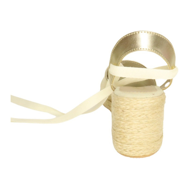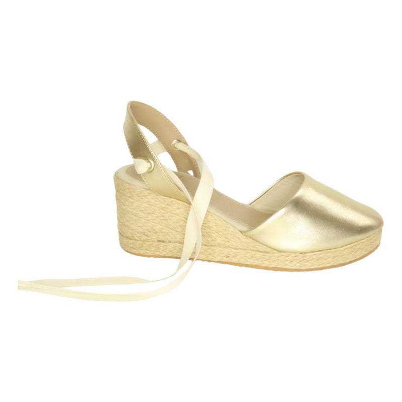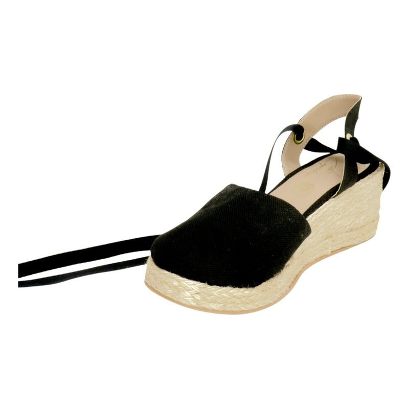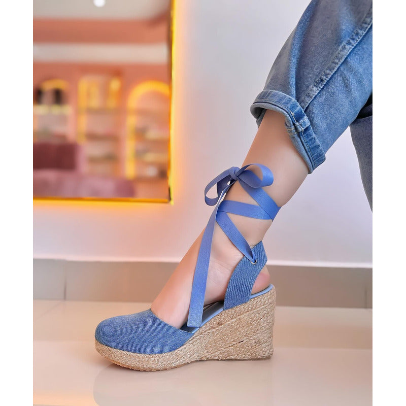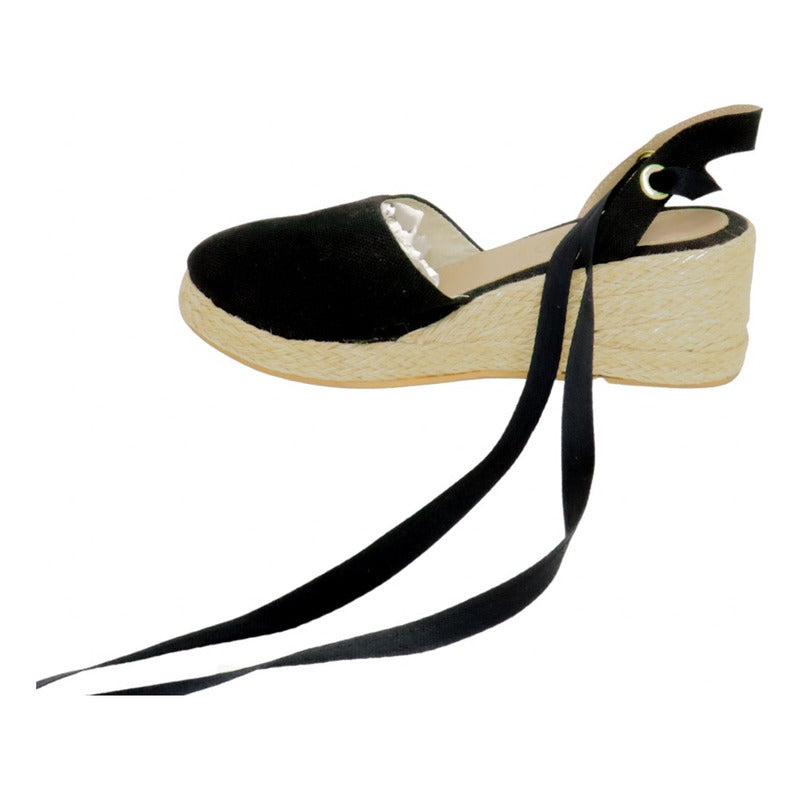 La parte superior, fabricada en material suave tipo lona, se adapta cómodamente al pie, mientras que las tiras para amarrar al tobillo aportan un toque femenino y coqueto que estiliza la pierna. Además, su suela ligera permite caminar con naturalidad y seguridad en cualquier superficie.