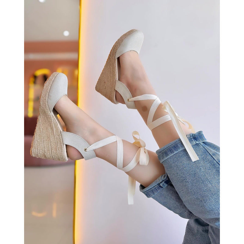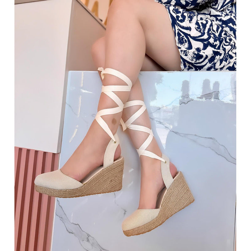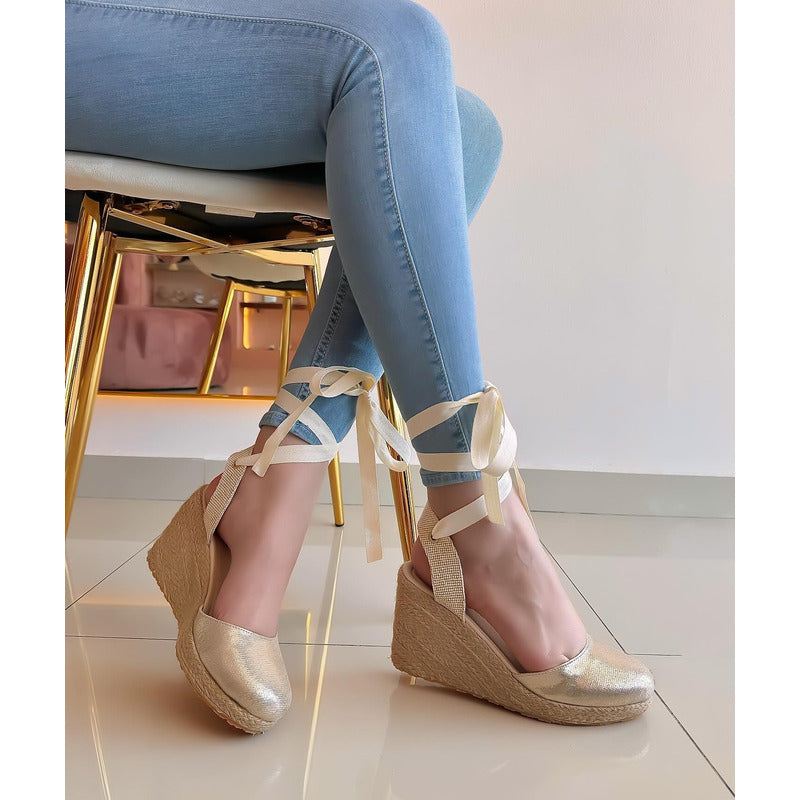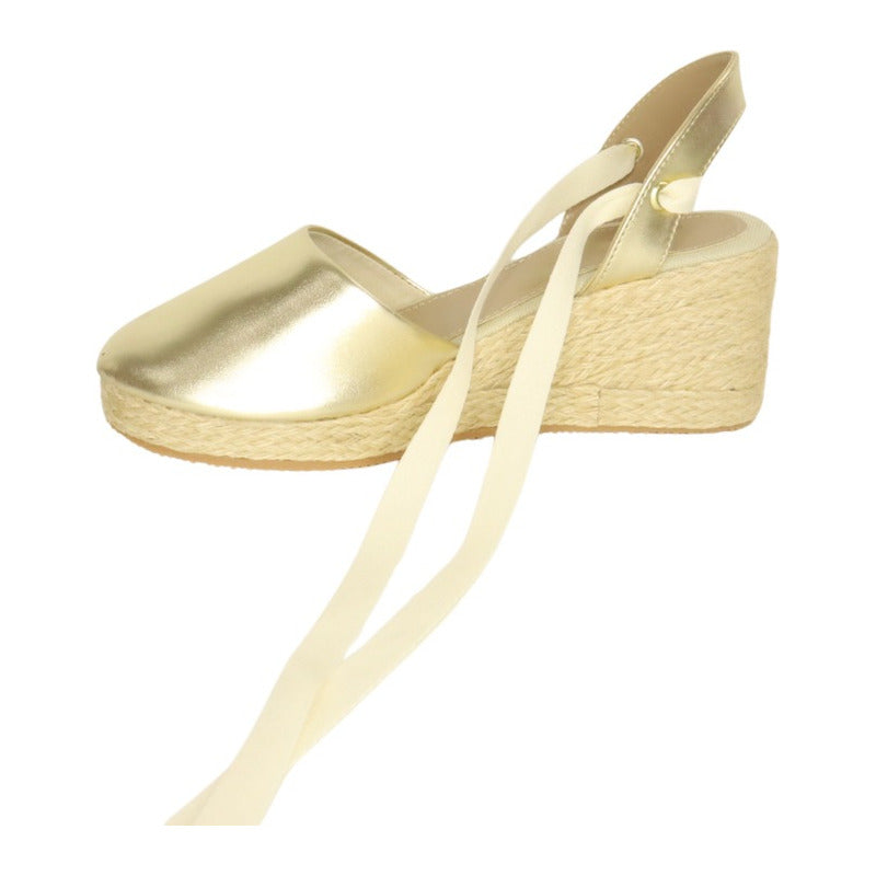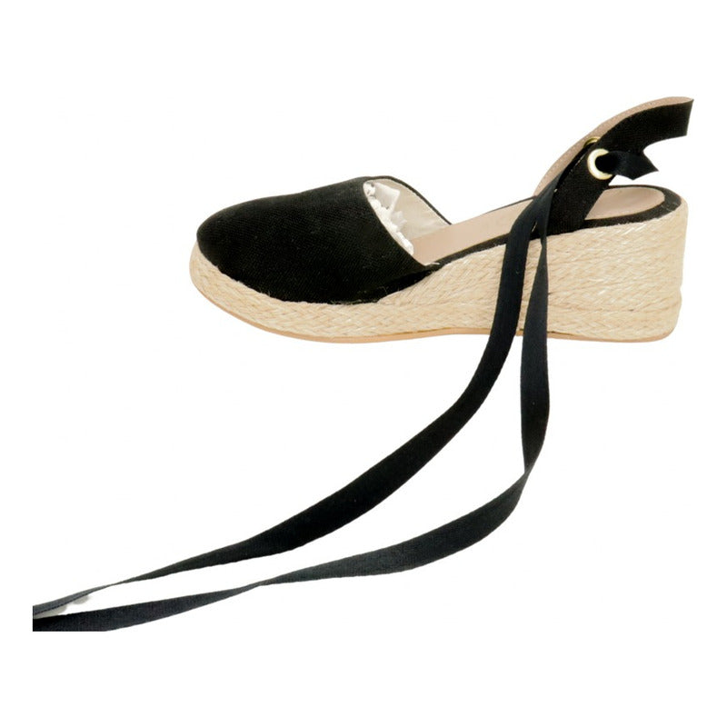 La parte superior, fabricada en material suave tipo lona, se adapta cómodamente al pie, mientras que las tiras para amarrar al tobillo aportan un toque femenino y coqueto que estiliza la pierna. Además, su suela ligera permite caminar con naturalidad y seguridad en cualquier superficie.