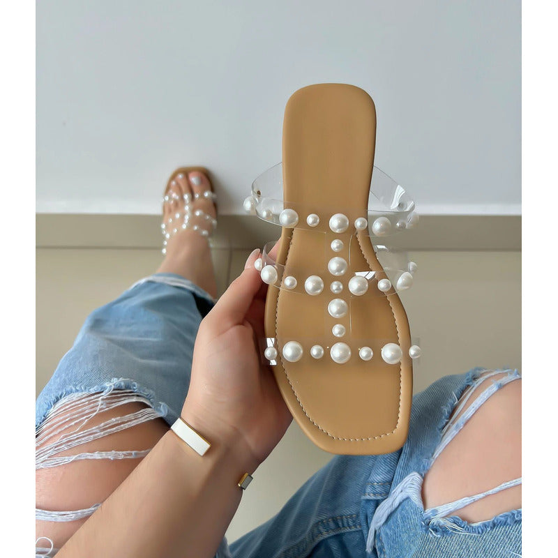 Elegancia, estilo y comodidad en un solo diseño. Nuestras sandalias Sevilla destacan por sus tiras transparentes decoradas con perlas, creando un look delicado y moderno ideal para cualquier ocasión. Son el complemento perfecto para elevar tus outfits sin perder confort.