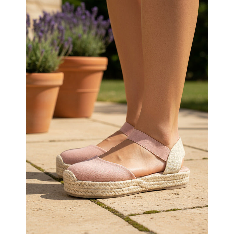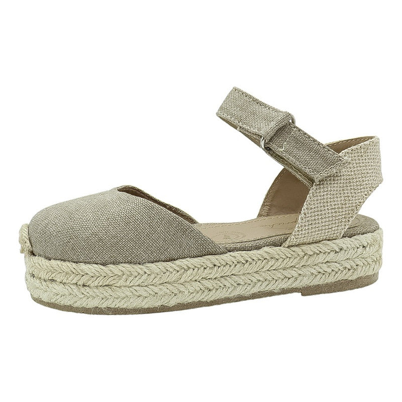 La sandalia BABY 132 está diseñada especialmente para niñas que necesitan un calzado cómodo, fresco y seguro, sin perder estilo. Inspirada en las alpargatas mediterráneas, cuenta con punta cerrada, plataforma ligera tipo yute y correa ajustable al tobillo para un ajuste firme y seguro al caminar.