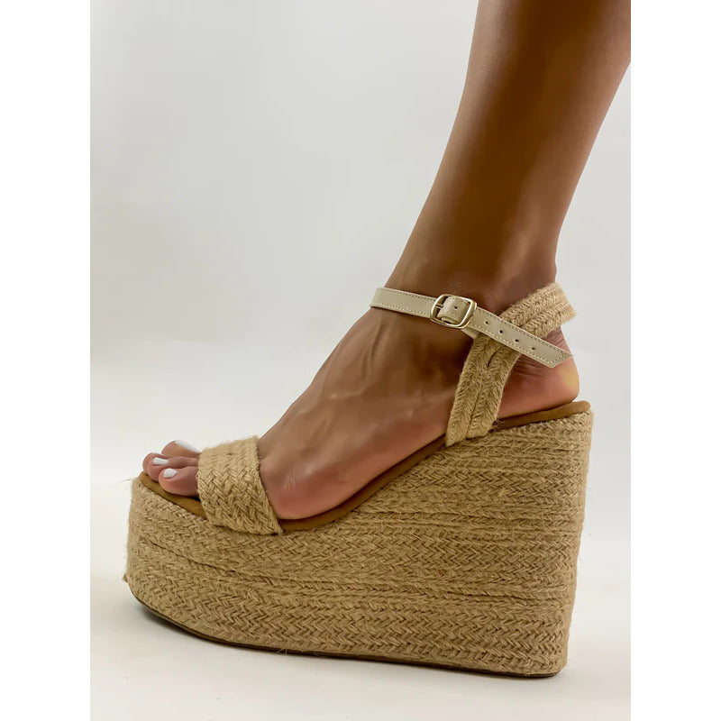 El modelo Bridget es la plataforma perfecta para quienes aman el look natural del yute, combinado con un diseño moderno, cómodo y muy femenino. Su plataforma alta completamente forrada en yute tejido a mano resalta su estilo artesanal, convirtiéndola en un calzado ideal para la temporada Primavera/Verano.