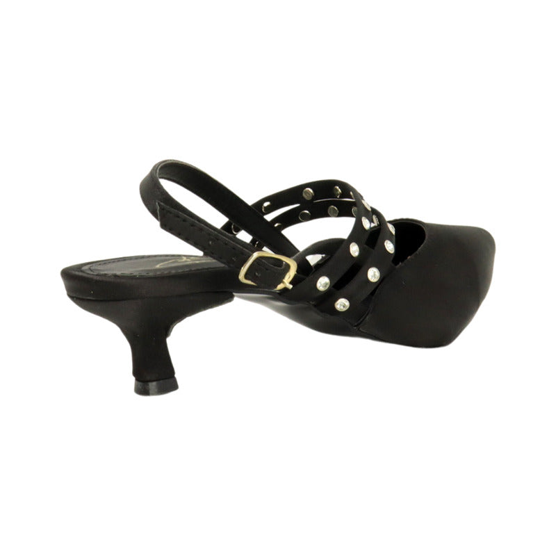 Sus dobles tiras decoradas con aplicaciones metálicas añaden un toque moderno y atrevido, mientras que el diseño slingback aporta frescura y sujeción al caminar. Loly está disponible en varios colores, desde tonos clásicos hasta los más llamativos, para que elijas el que mejor exprese tu personalidad.