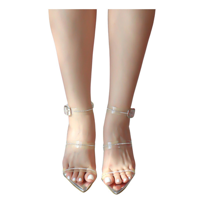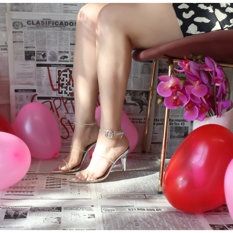 Eleva tu estilo con las zapatillas Kiden, el modelo perfecto para quienes aman un look moderno, elegante y lleno de brillo. Diseñadas con tiras transparentes que estilizan el pie y un tacón delgado femenino, estas sandalias se convierten en el accesorio ideal para cualquier ocasión especial.