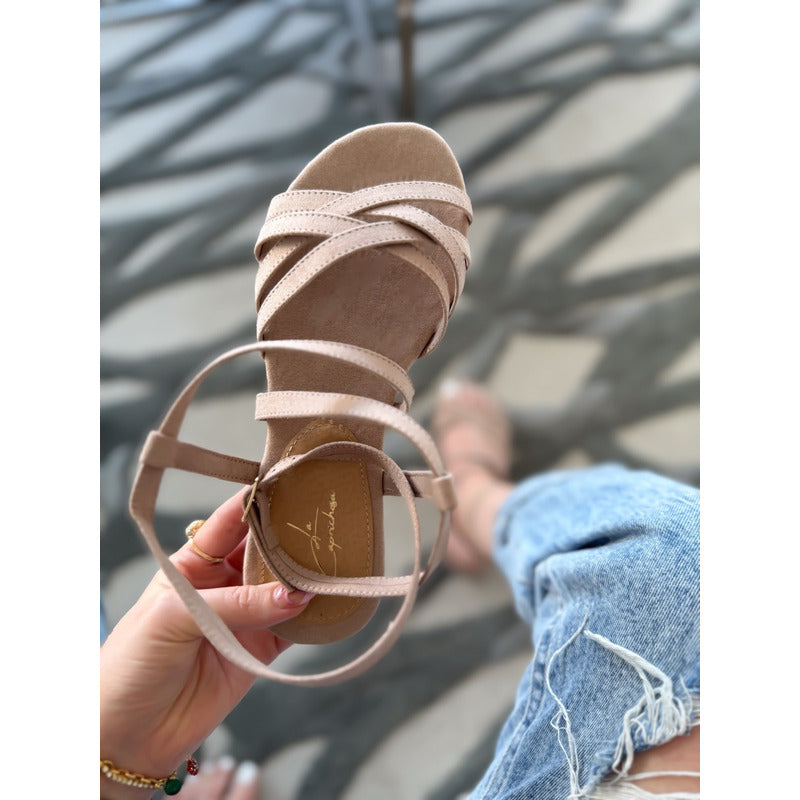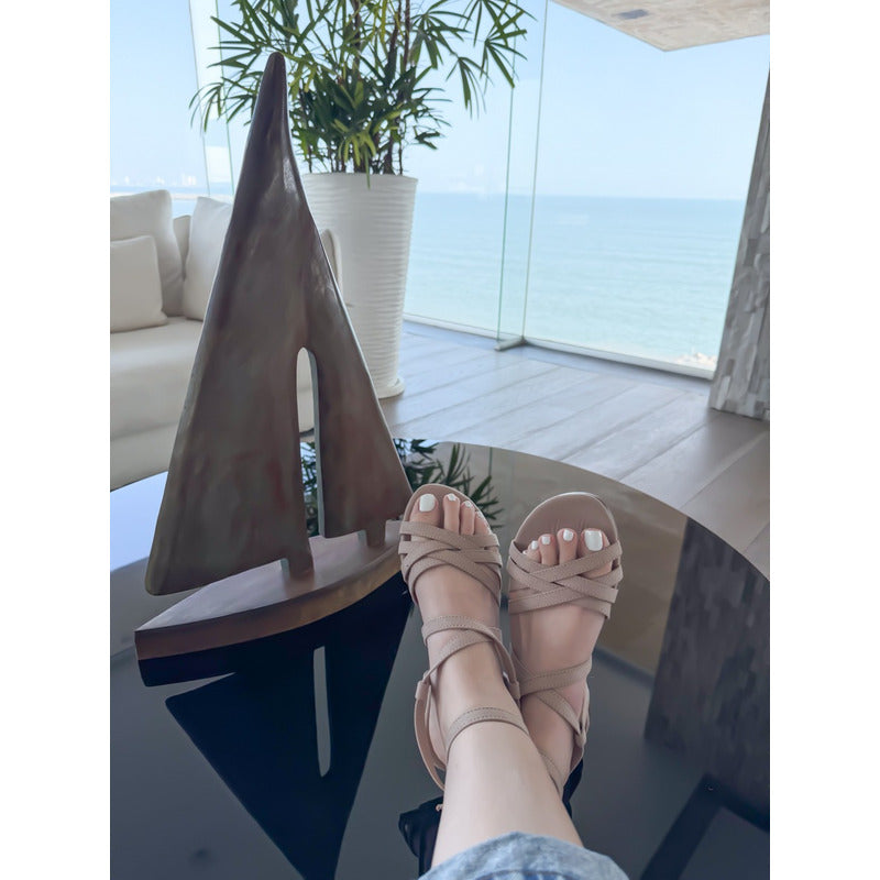 Descubre la comodidad y estilo del Modelo Ela, huaraches de piso con tiras delgadas y ajuste al tobillo. Su diseño ligero, femenino y versátil los convierte en el calzado perfecto para el día a día.