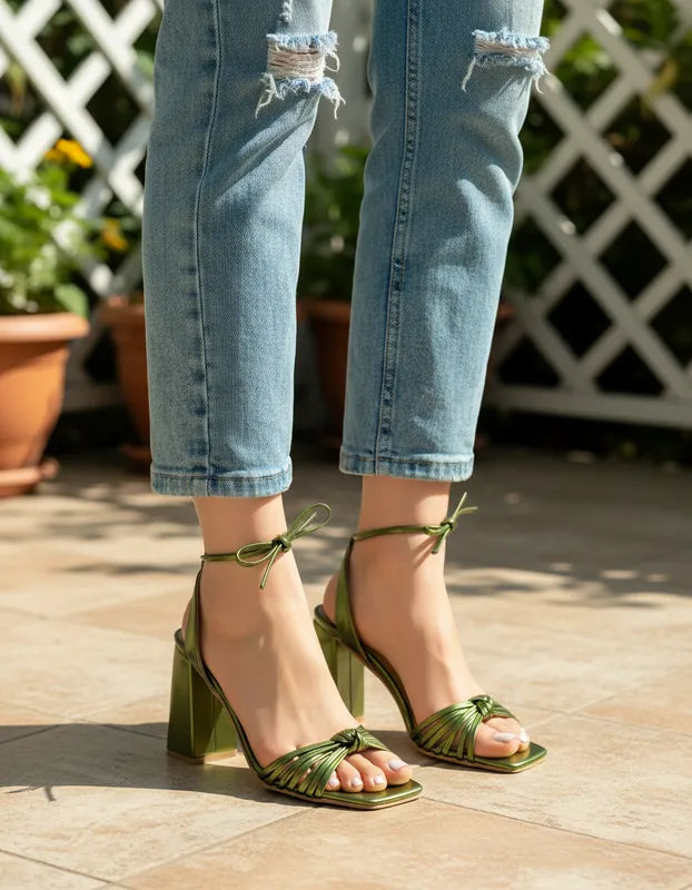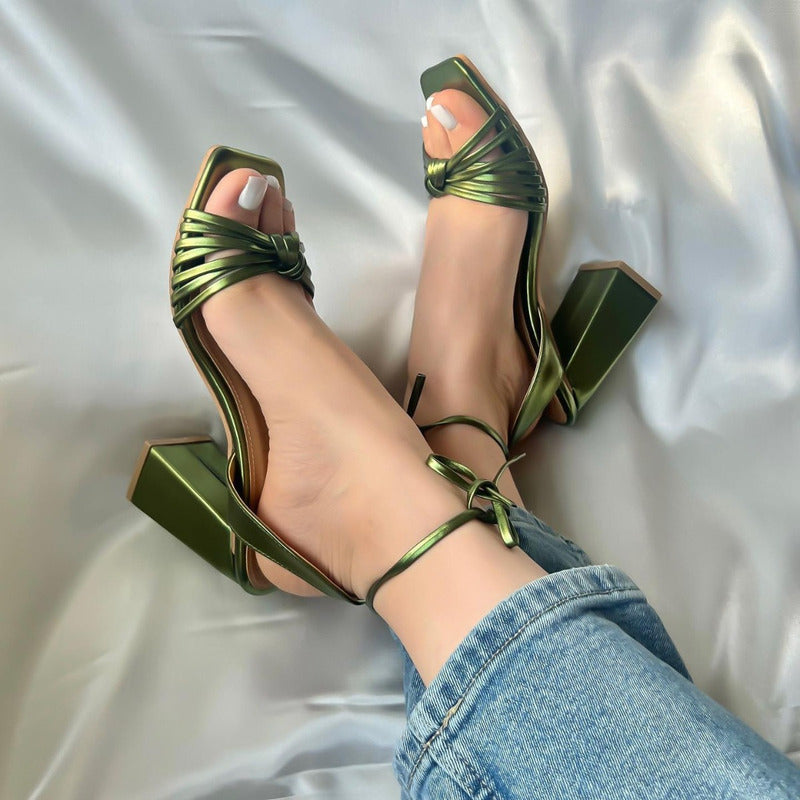 💎 Marek – Glamour que se siente en cada paso 💎 Zapatillas con tacón triangular con tiras delgadas y lazo