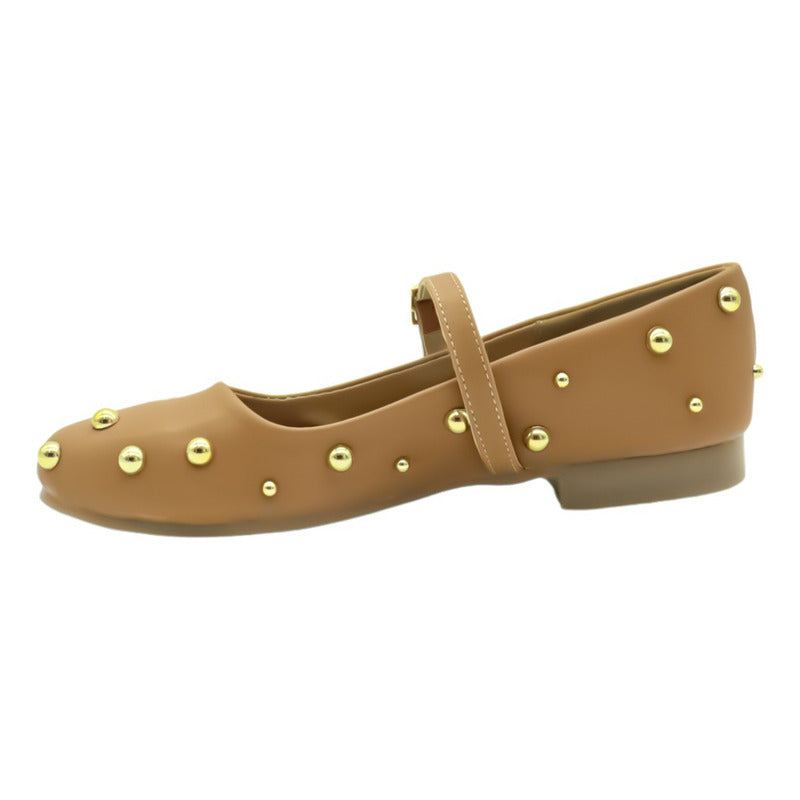 👑 Charlotte – Elegancia con actitud dorada 👑 Balerinas Flats Con Detalles Metalicos