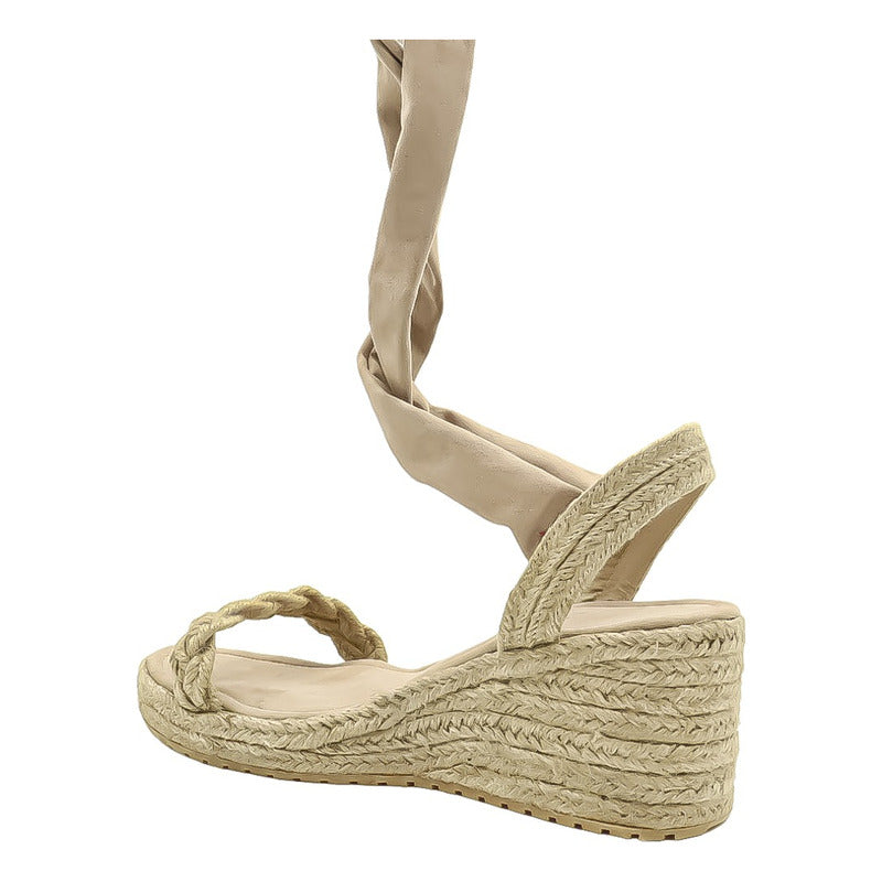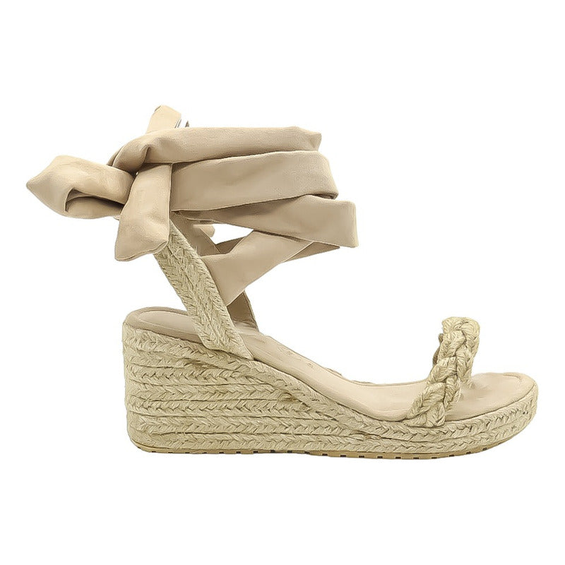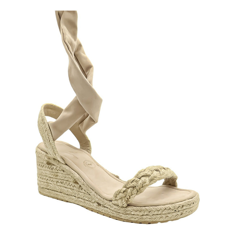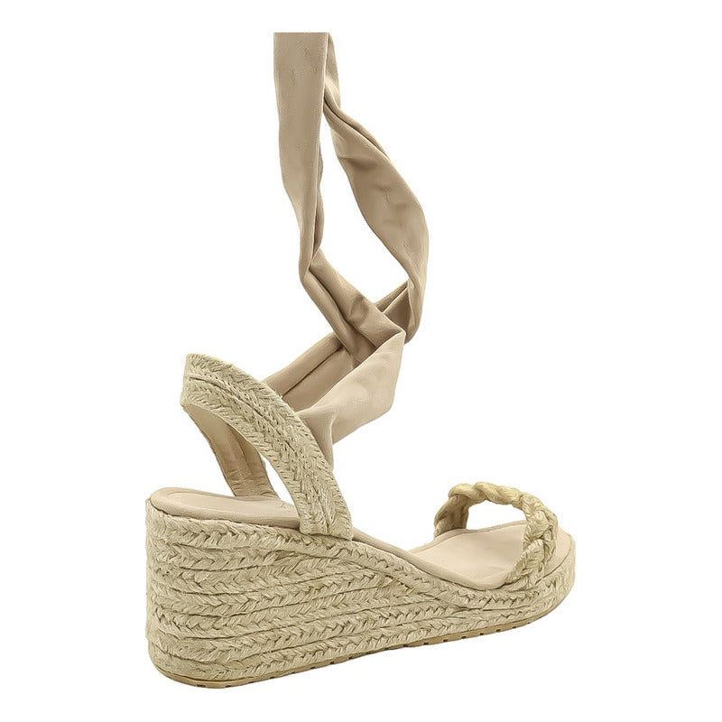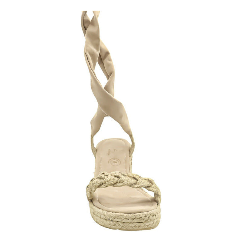Sandalia Plataforma Bajita Suela Yute Lazo Amarre Tobillo - Nude - 22 Mx