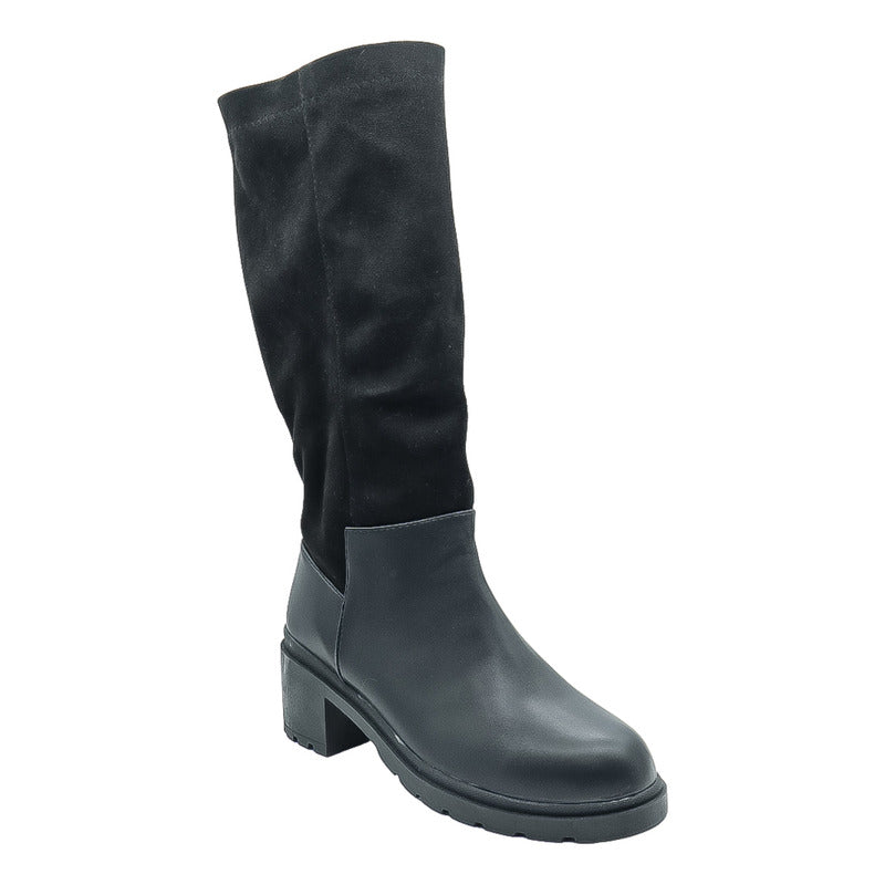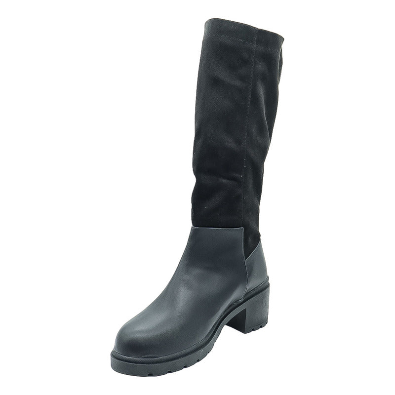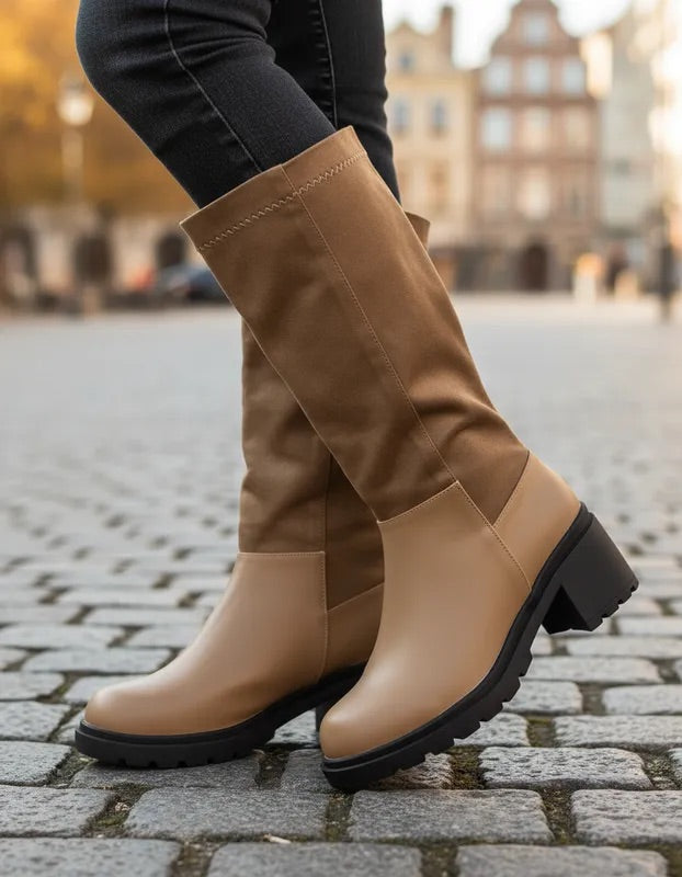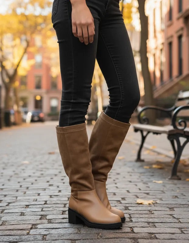 Botas Largas Mujer Camel Negro, Botas De Tacón Medio Cómodas 23 Mx