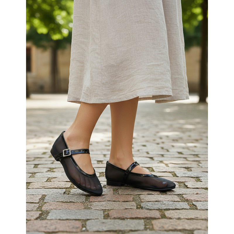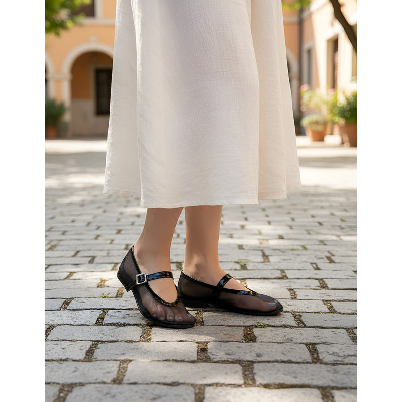 Bailarinas Mujer Negras Con Malla Ballerinas Negras Transparentes Negras