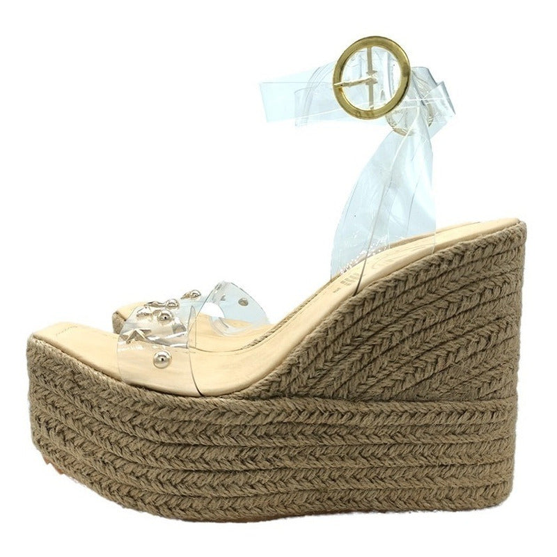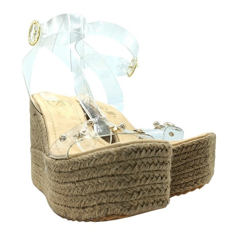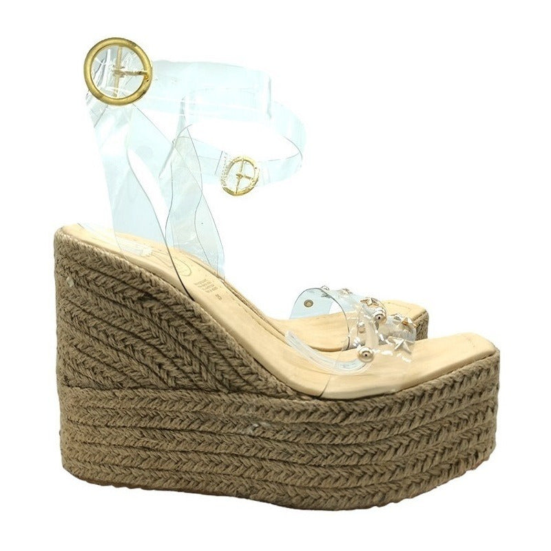 HERMOSAS PLATAFORMAS TRANSPARENTES CON DETALLE DE ESTRELLAS Y ESTOPEROLES. Altura: Talón de 13 cm. y Puntera de 7 cm.