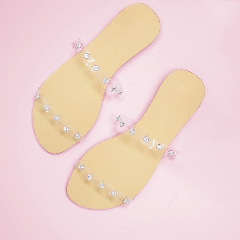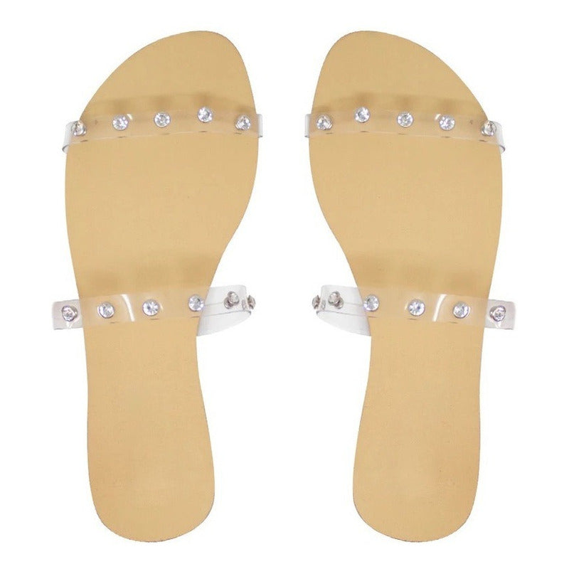 Sandalias de Piso Transparentes con Cristales – Moda Dama