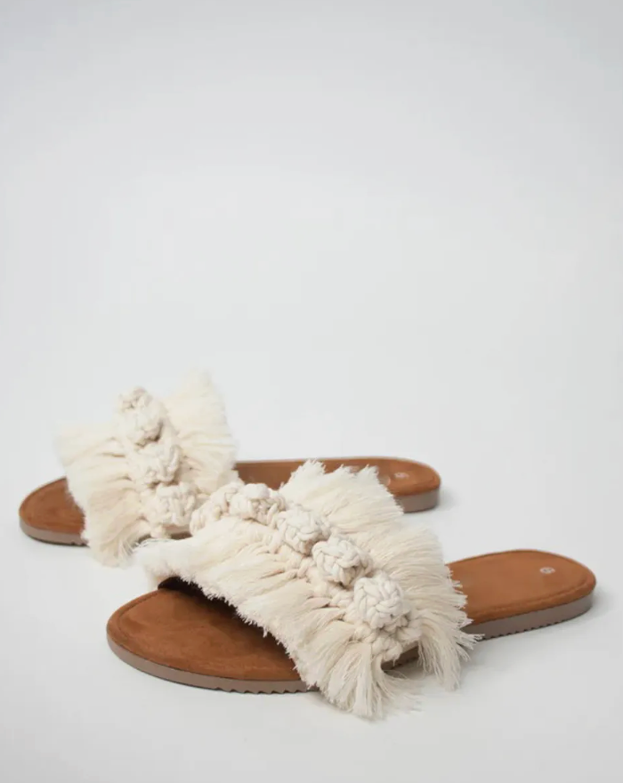 Elige las Sandalias De Piso Tejida Macramé Mujer de La Caprichosa y disfruta de la fusión perfecta entre confort y diseño. Dale a tus pies el cuidado que merecen y marca la diferencia en cada paso que des.