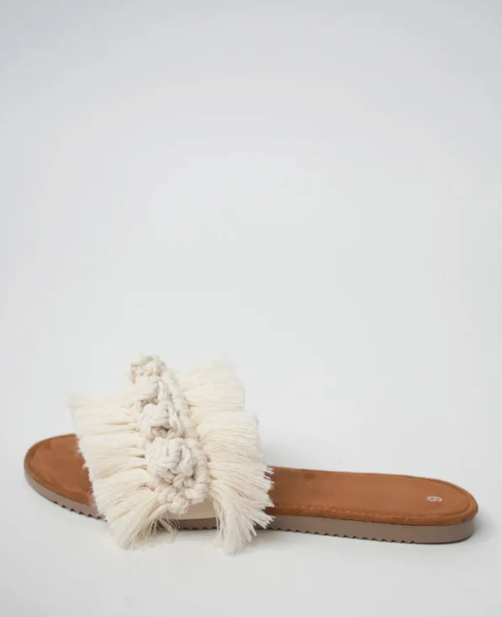 Las Sandalias De Piso Tejida Macramé Mujer de La Caprichosa son la elección perfecta para quienes buscan comodidad y estilo en su día a día. Con un diseño de slides que se adapta a la forma del pie, estas sandalias ofrecen una experiencia de uso placentera, ideal para cualquier ocasión.