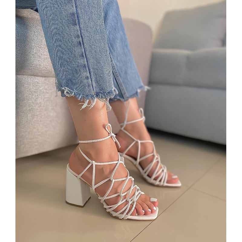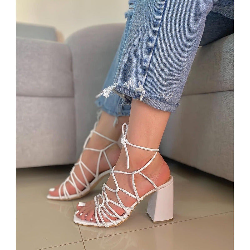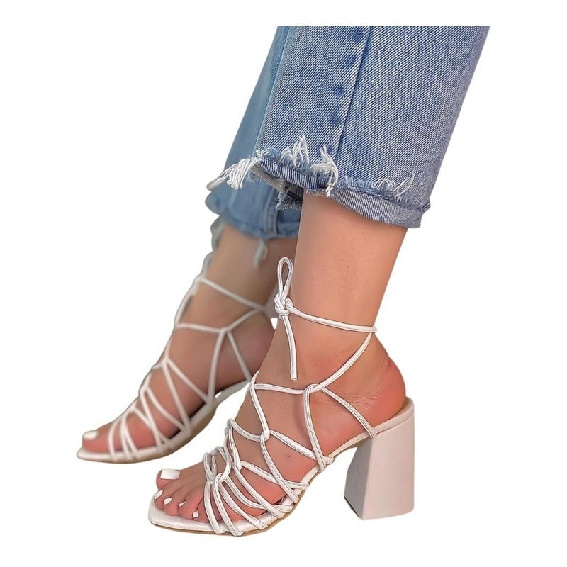 El modelo Vicky es la sandalia perfecta para quienes aman un diseño llamativo, moderno y lleno de personalidad. Sus tiras delgadas entrelazadas, que envuelven el pie y el tobillo, crean un efecto visual sofisticado que estiliza la pierna y hace de este modelo un verdadero protagonista en cualquier outfit.